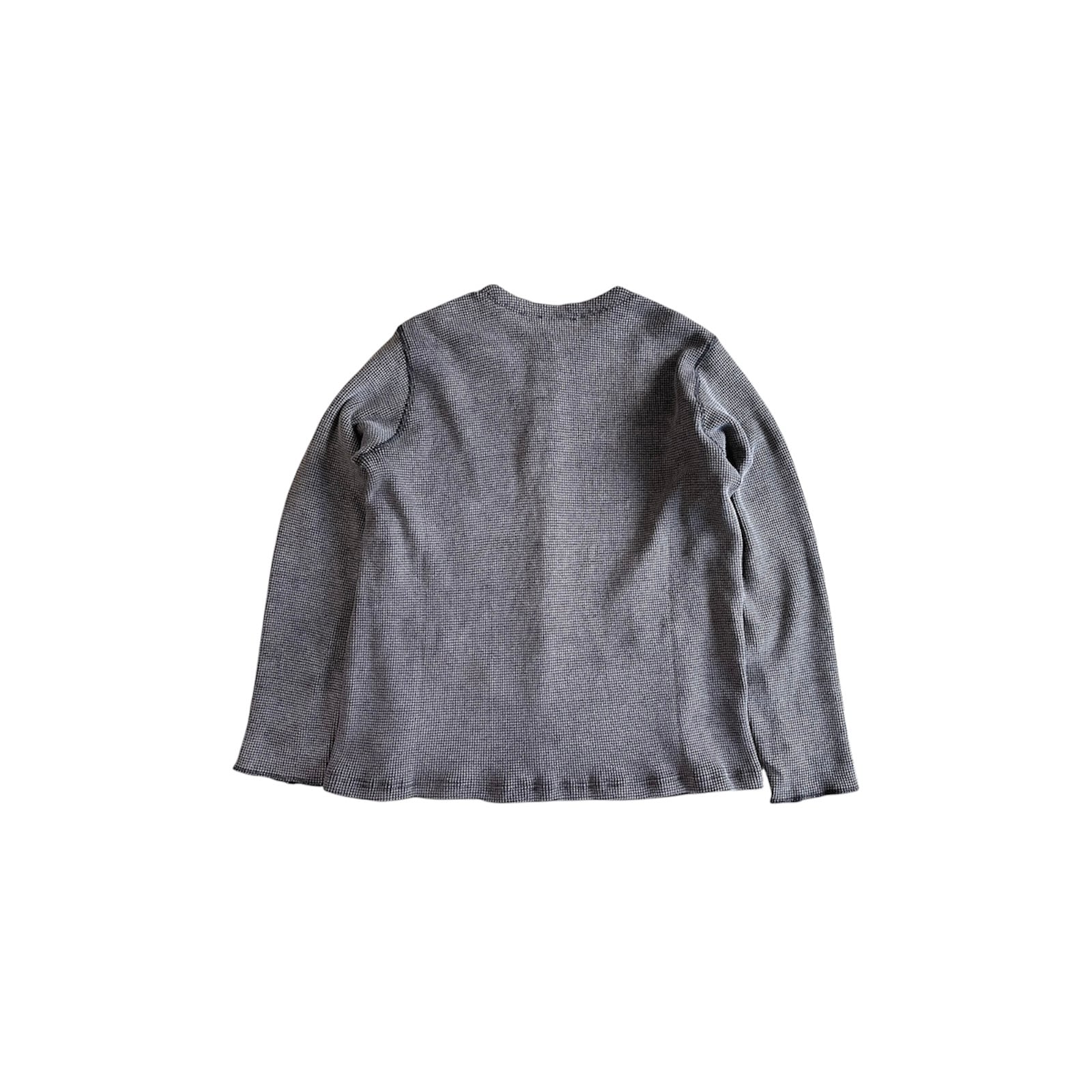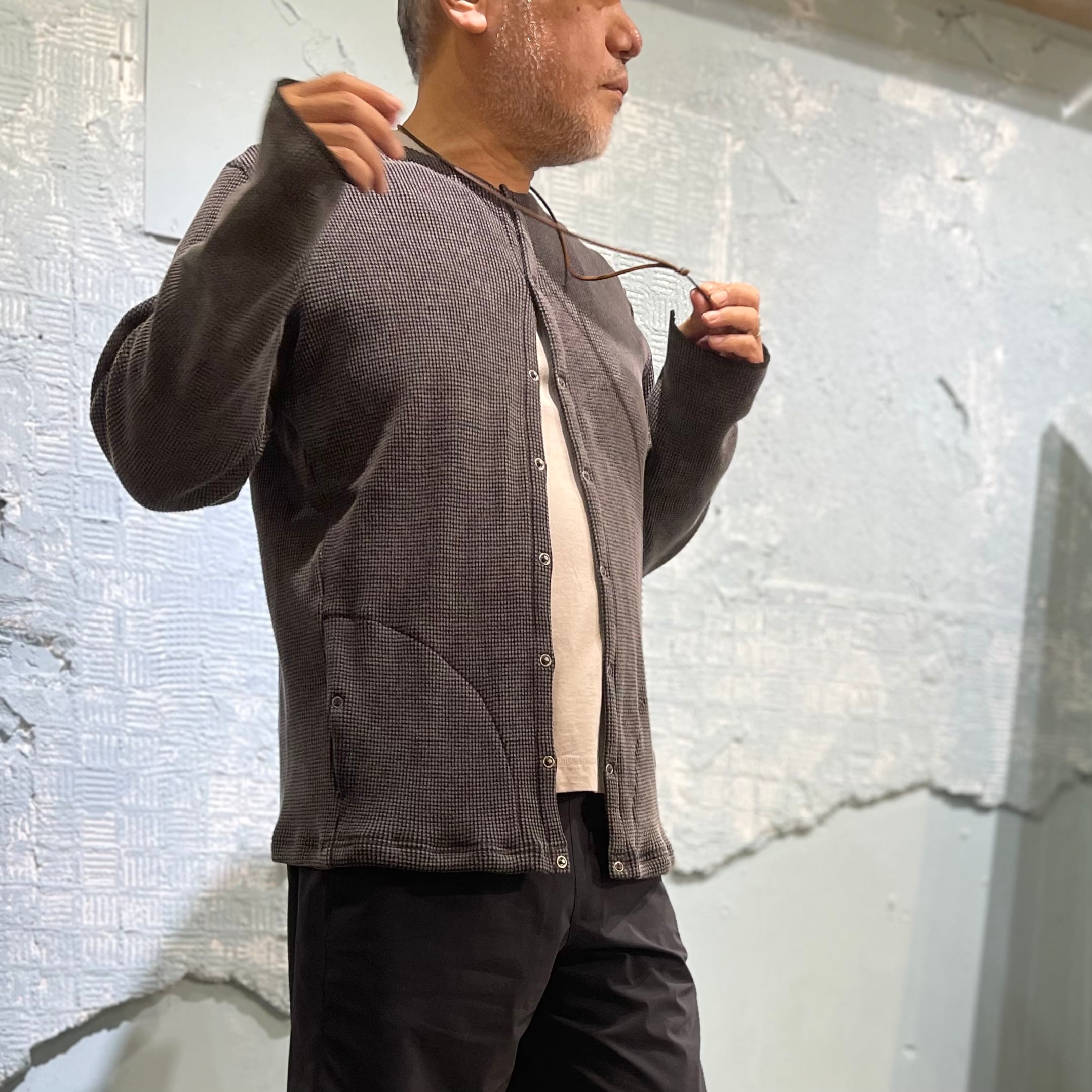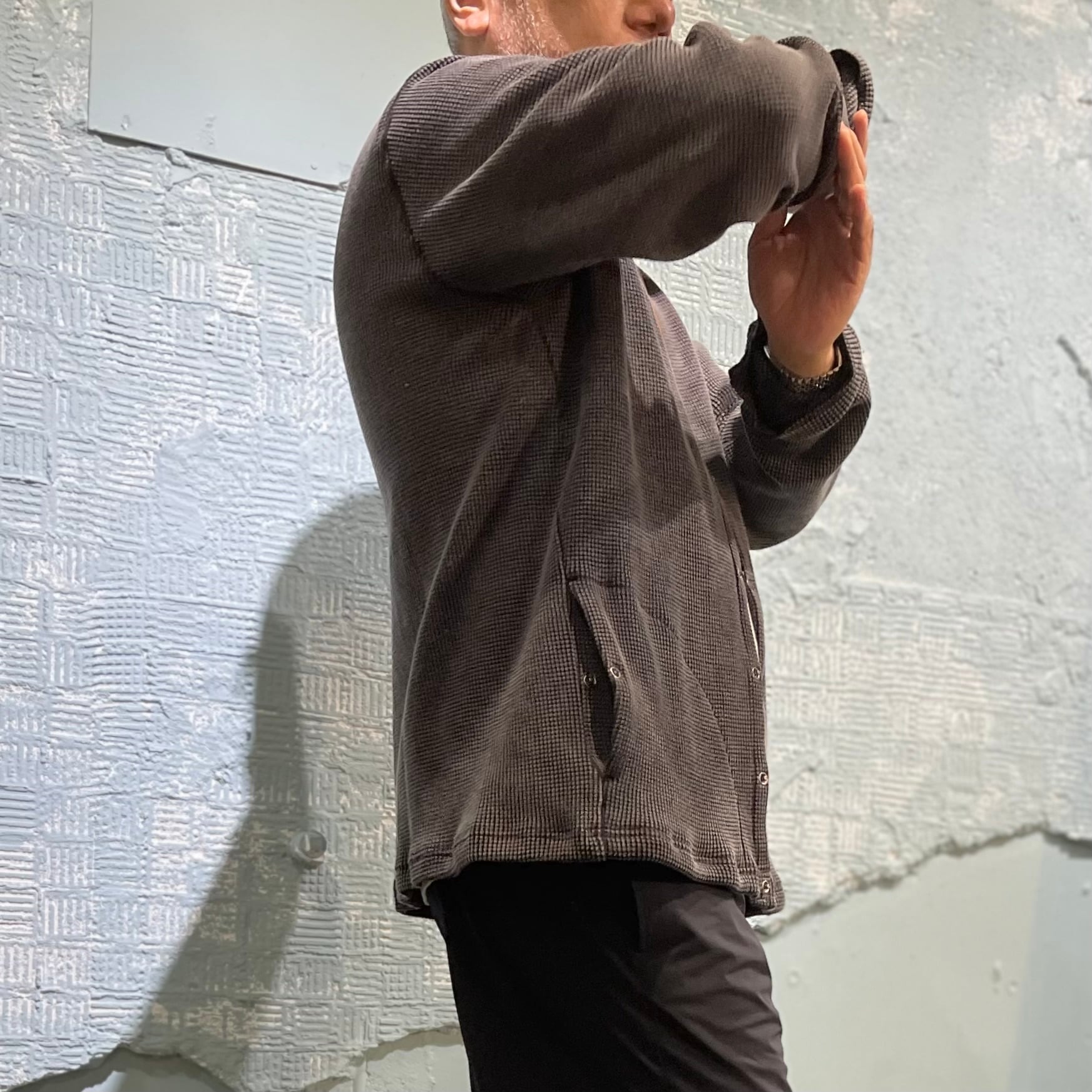『サバイ』のワッフル素材のシャツカーディガンです。 ピグメントウォッシュのより柔らかく仕上げられた素材感、肌触りも優しいです。