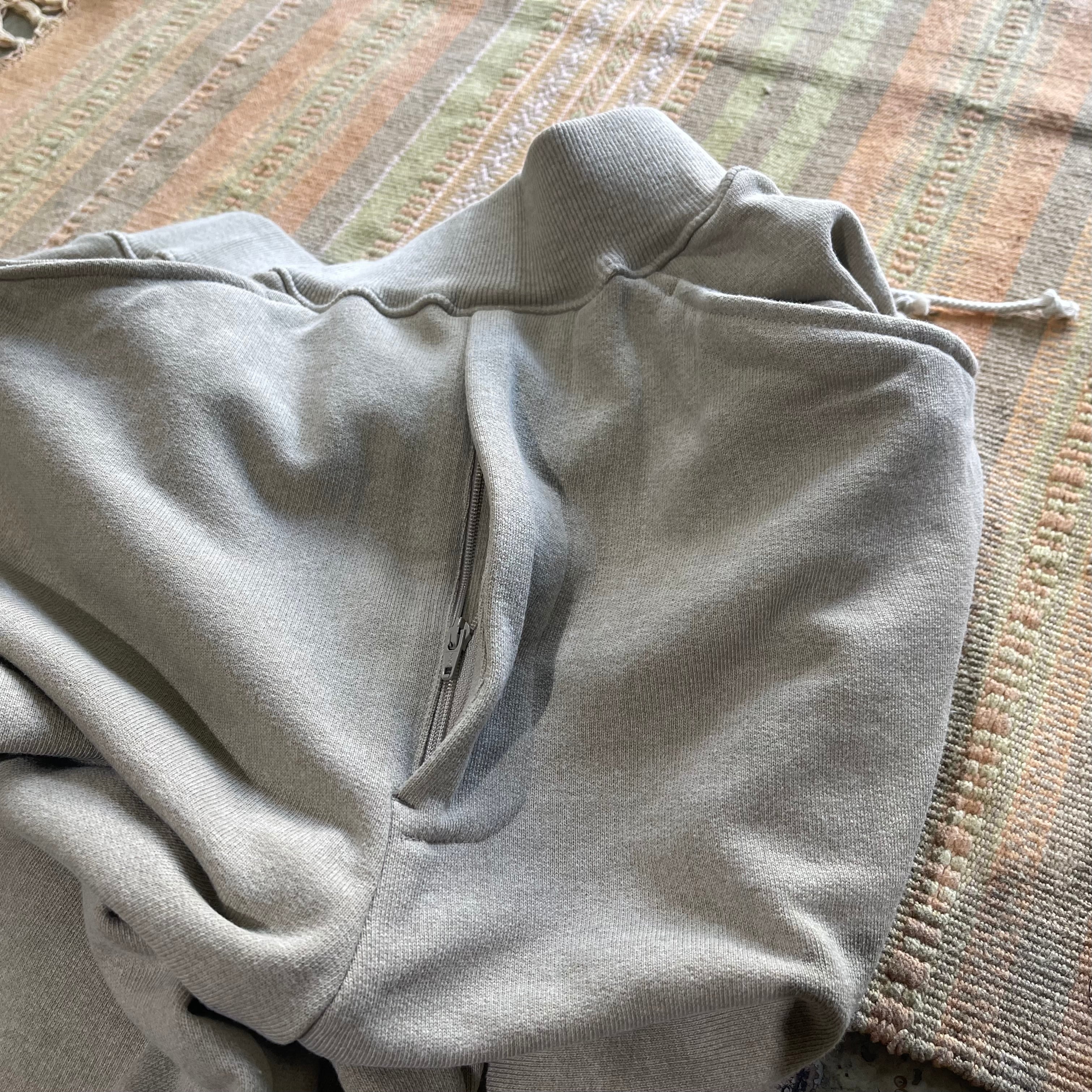 『サバイ』のジップで太さを変えれるスウェットパンツです。裏毛の厚手で腰のあるスウェット素材ピグメント加工で洗い込んだフェード感のある色目のバギーパンツです。 コンシールファスナーで目立たない仕様。開けた時は裏毛の表面が現れます。