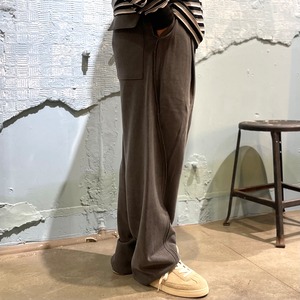 立体感のあるディテールが特徴の「パースプロジェクツ」のスウェットパンツです。 きめの細かな裏毛スウェット。少し乾いたビンテージの黒を表現 ゆとりのあるストレートシルエット、生地方向を逆にとることで断ち切りの脇のシームが巻いてくるような作りになっています。