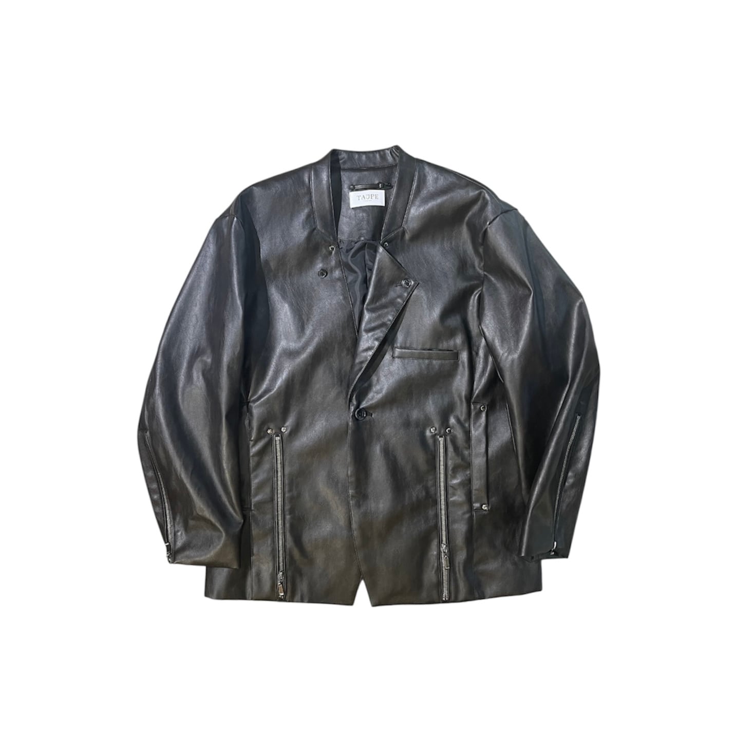 センターベンツ仕様のジャケットタイプのブルゾンです。 スタッズをデザインアクセントに適材適所に散りばめたデザイン 植物由来の上質なフェイクレザー素材。裏地は全面に滑らかなポリエステル 袖通しもしやすいです。身幅はしっかりありますのでインナーにニットなどを着るのも良いかと。