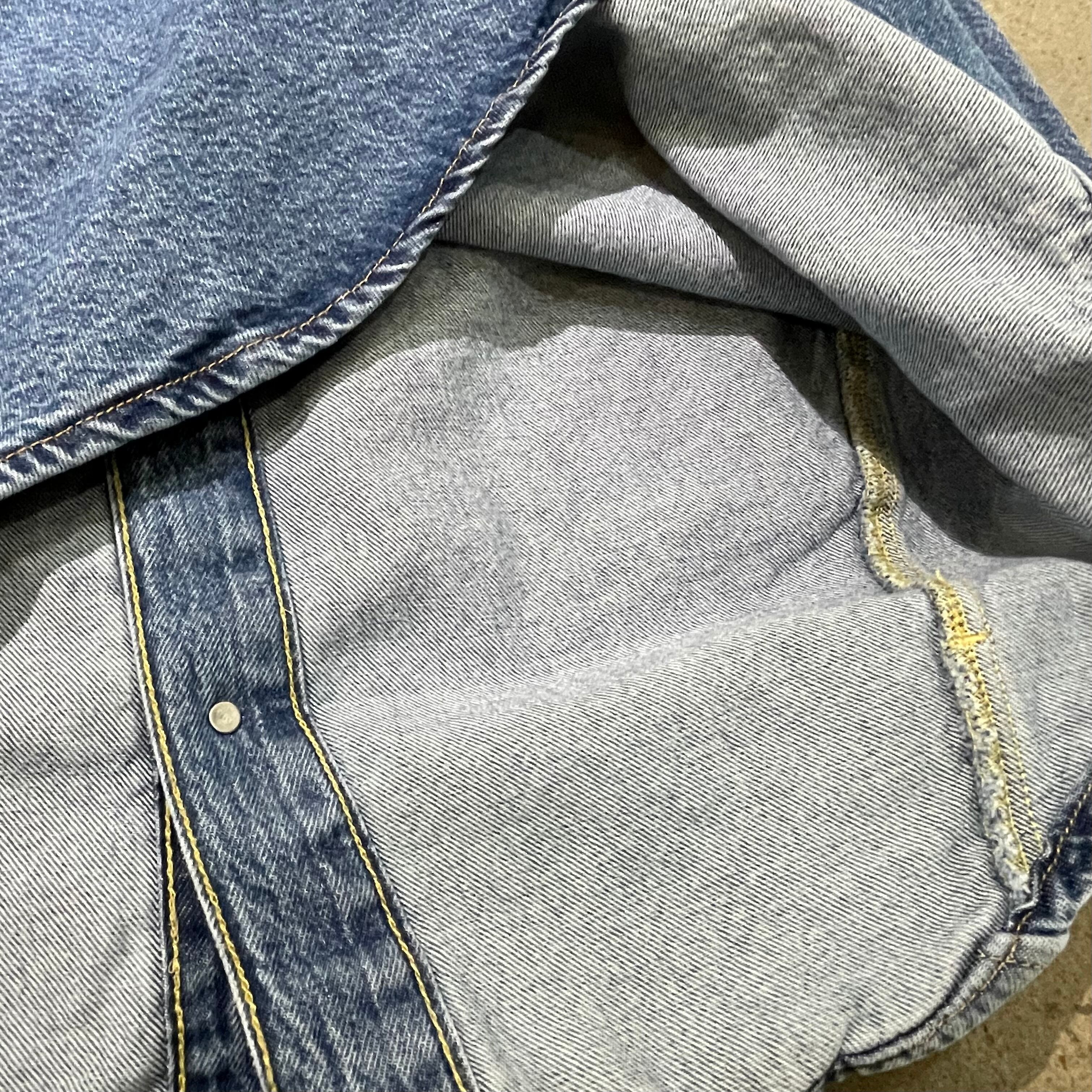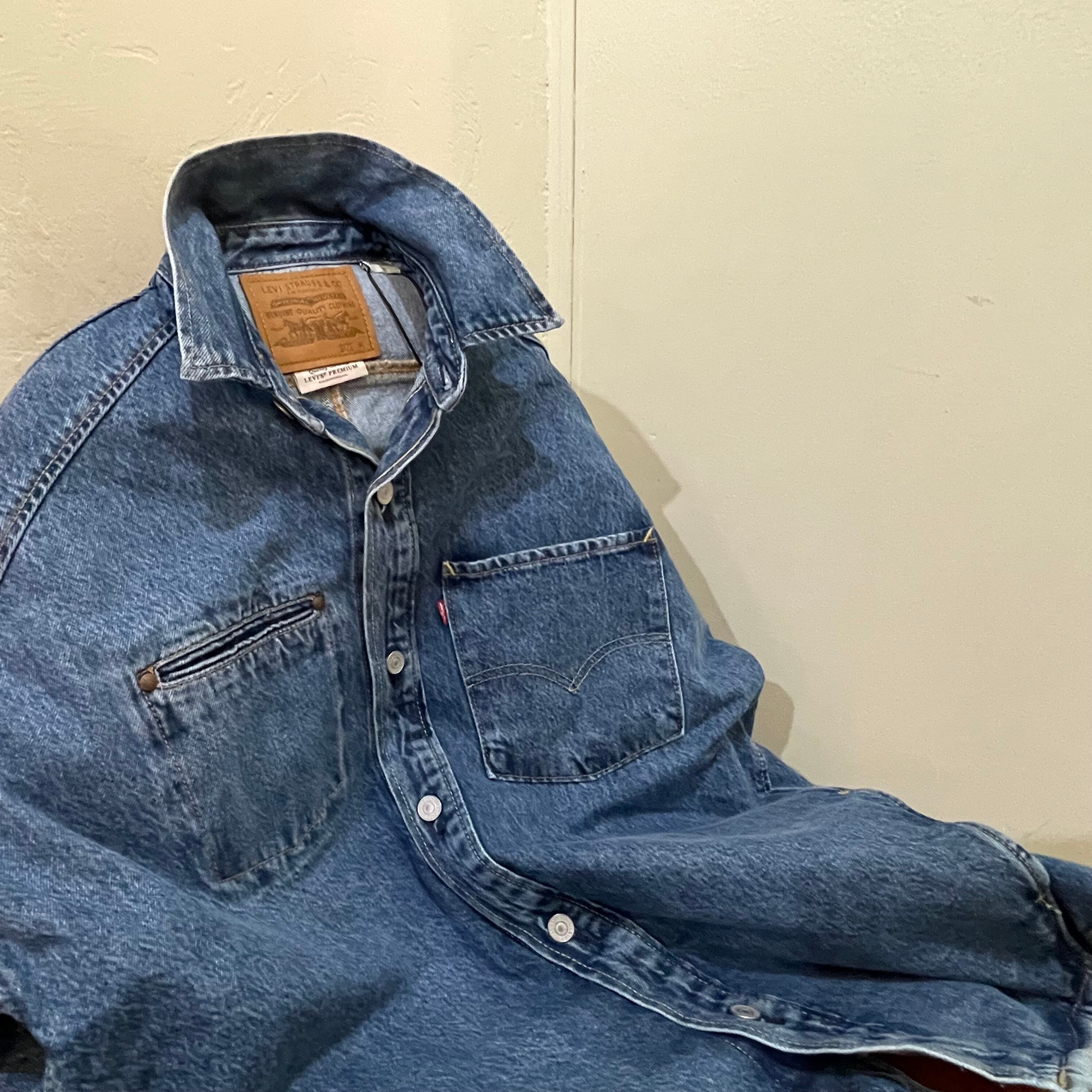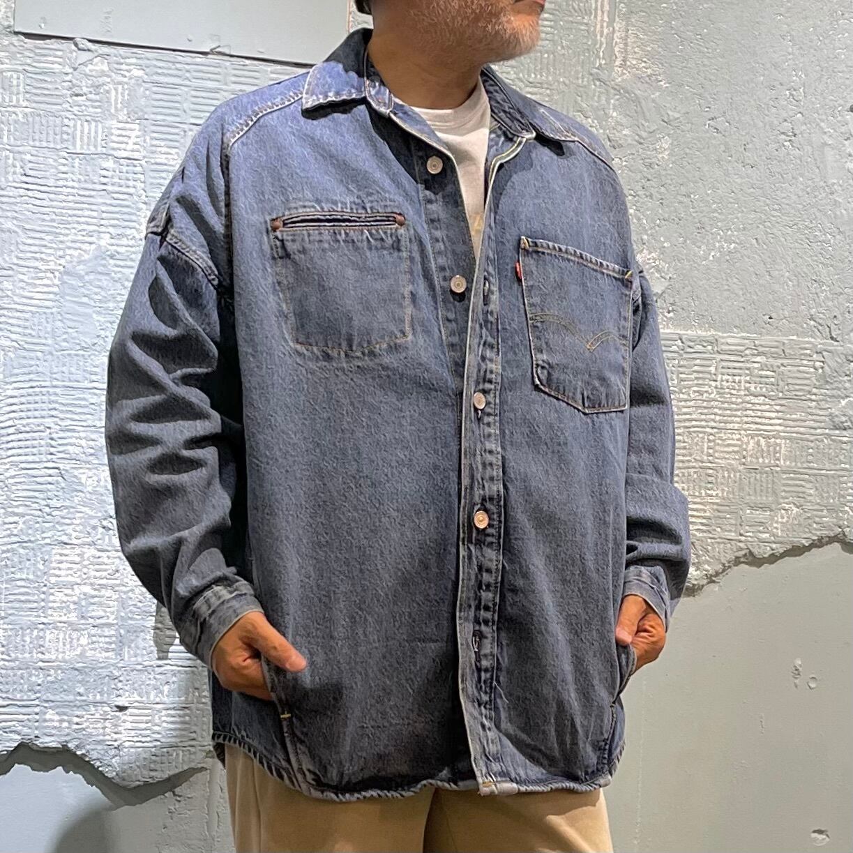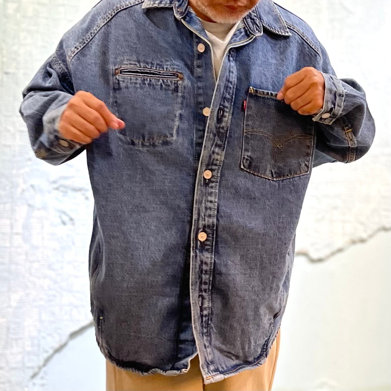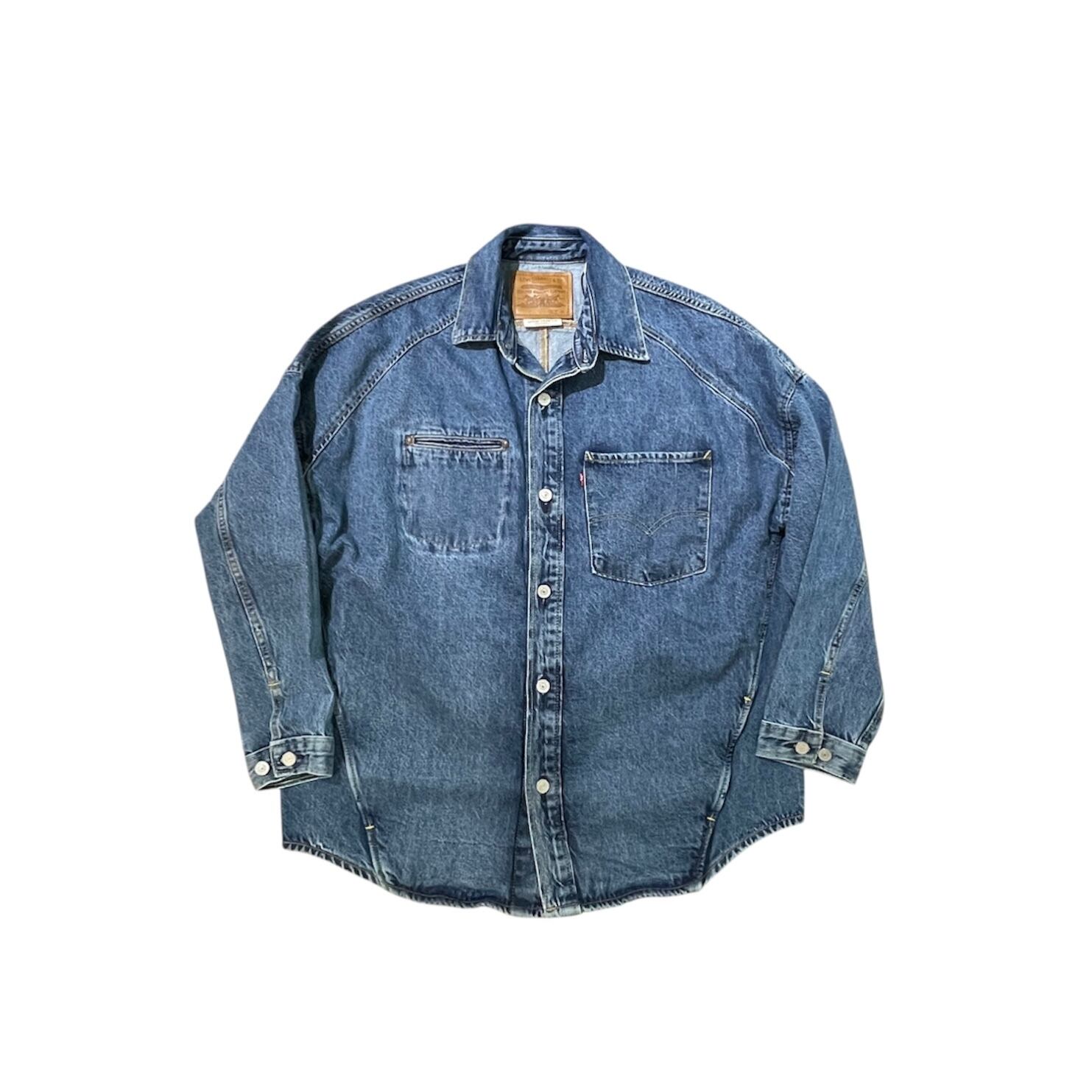 リーバイスからビンテージ加工を施した立体裁断を駆使したオーバーサイジングなデニムシャツです。 vintageからインスピレーションを得た忠実な作り込み そしてウエスト脇にポケットを付けるなど使い勝手も良い仕様です。 胸の大きめなポケットのピスネームタグはBIG 「E」だったりとこだわりも◎