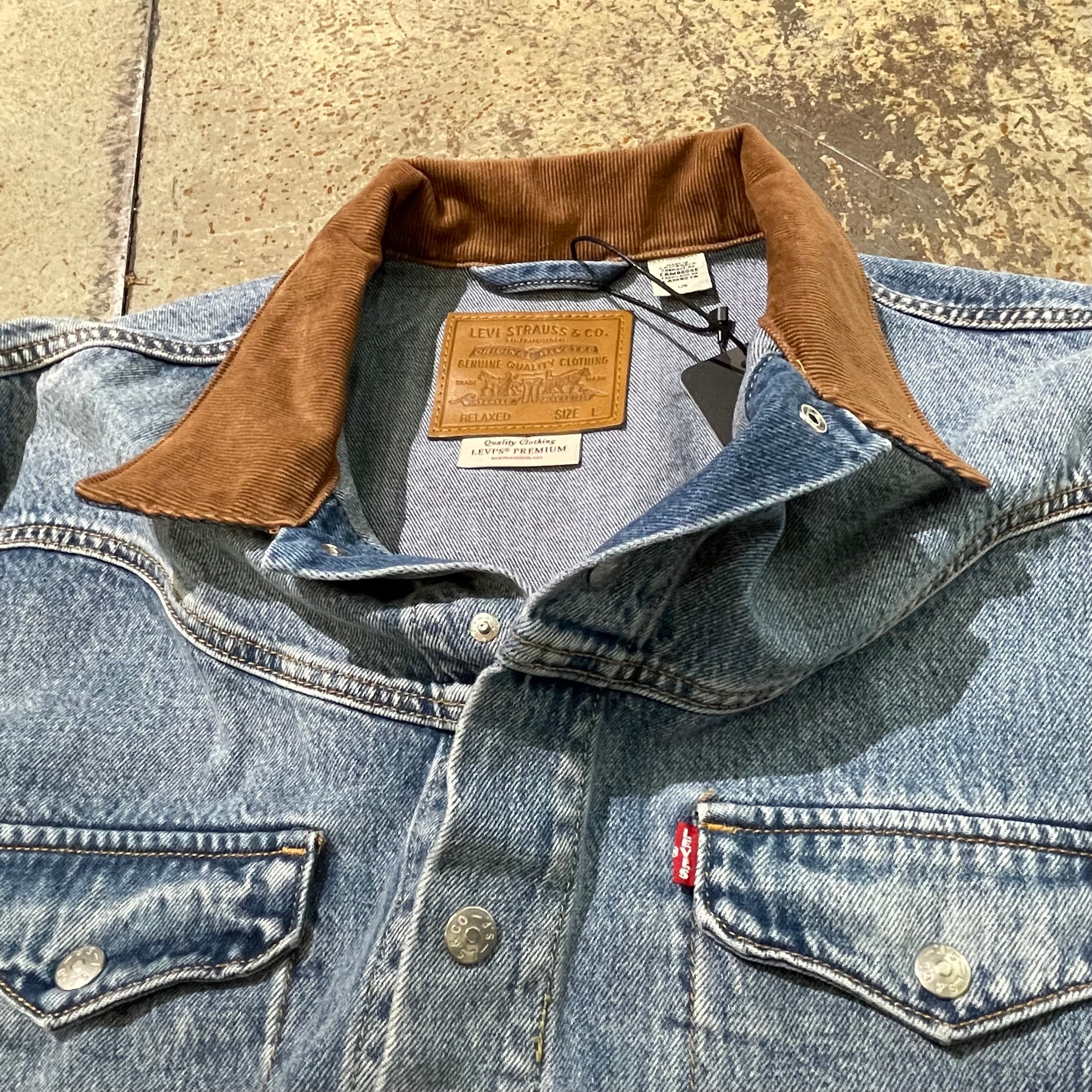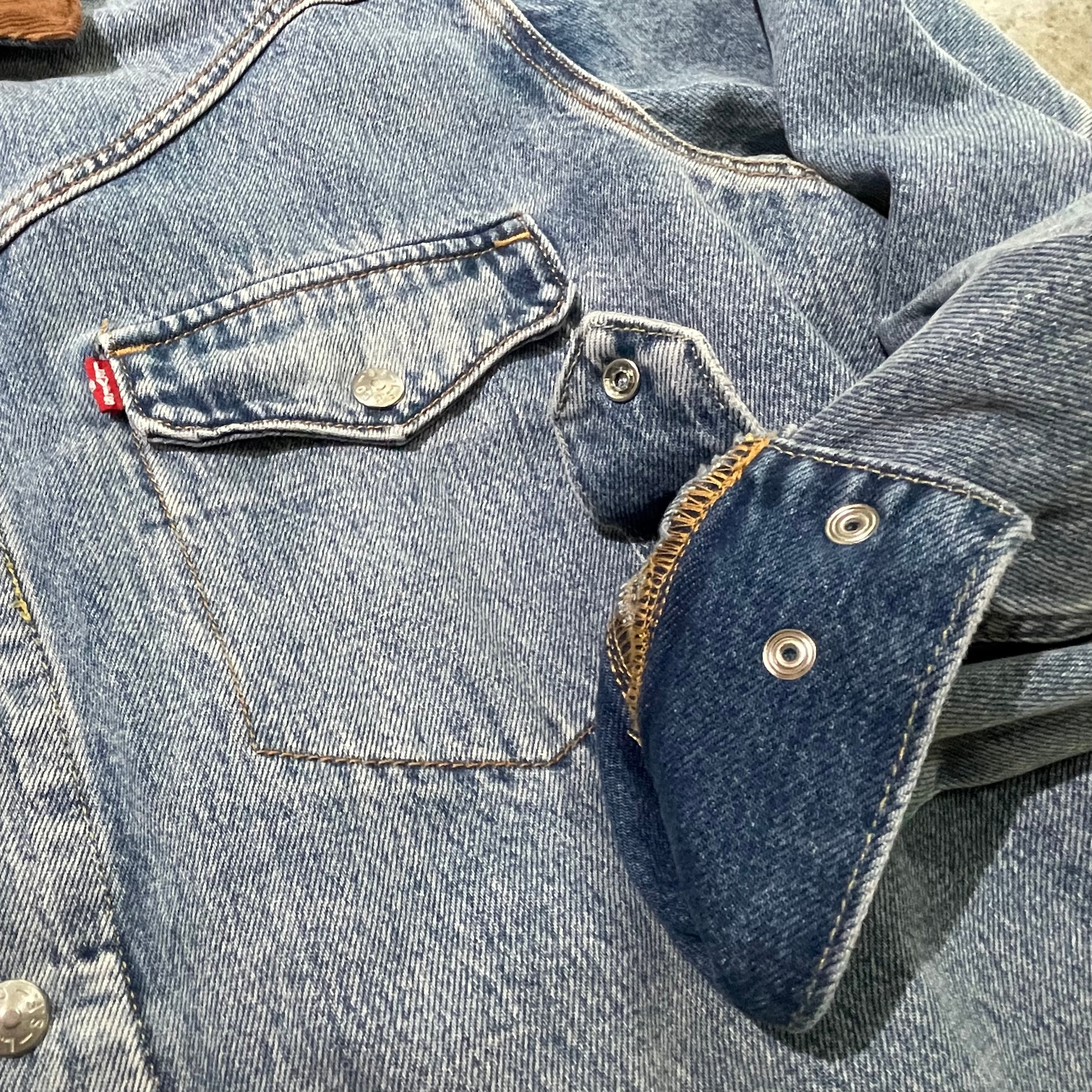 リーバイスからビンテージ加工を施したウェスタン型のトラックデニムジャケットです。 忠実な作り込み そしてウエスト脇にポケットを付けるなど使い勝手も良い仕様です。 襟のコーディロイ仕様などクラシカルなアメリカの雰囲気
