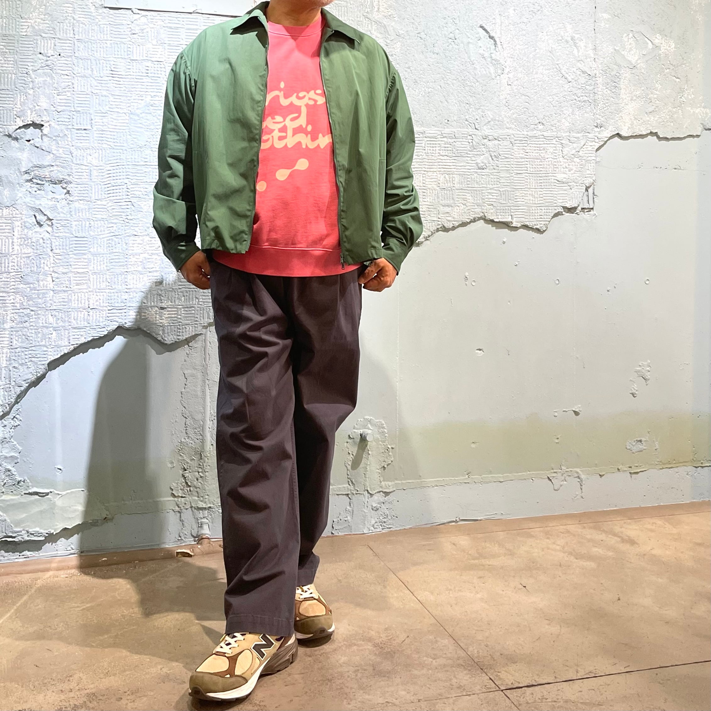 コーディネイトで使用しているグリーンのアウターとボトムスは「pers projects」 黒いブルゾンは「CHANGES 」 おすすめなコーディネートです、どれもオンラインショップに掲載してますので ぜひ そちらもご覧ください。