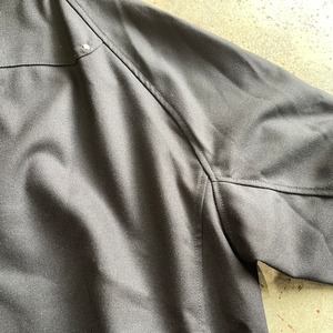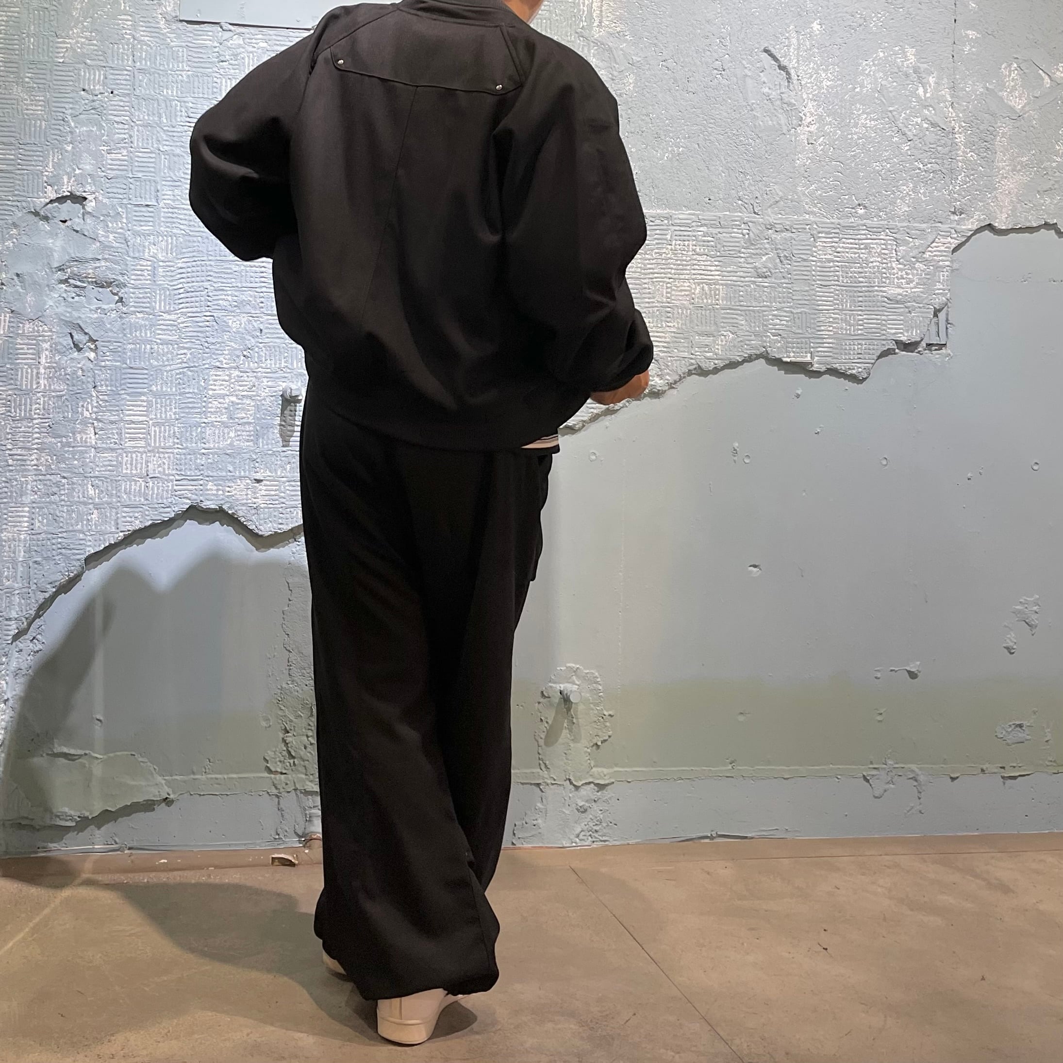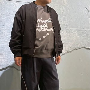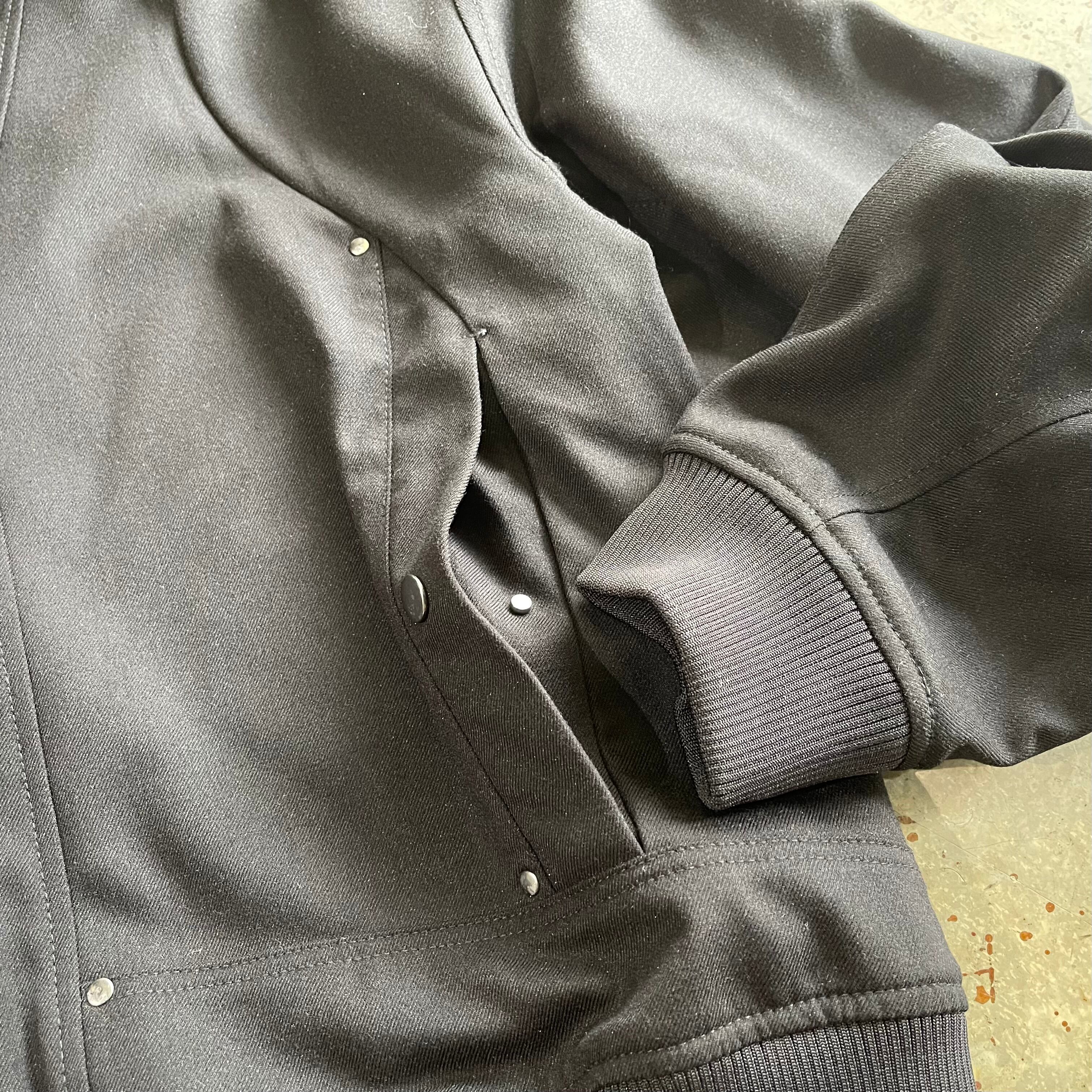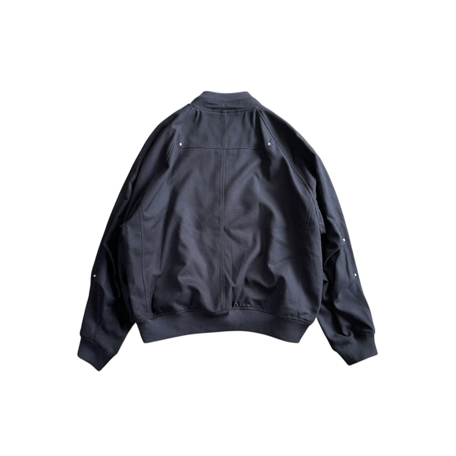 トープのスタッズを加えたMA1型のブルゾンです。 裏地もしっかり付いた本格的なアウターとなります。ポリエステル73% レーヨン24% ポリウレタン3%のしっとり厚みのある化繊の質感 伸縮性もあり着やすい素材です。 ダーツやタックを多用したデザインですが的確な位置関係なので肘の部分など着やすさに反映されております。