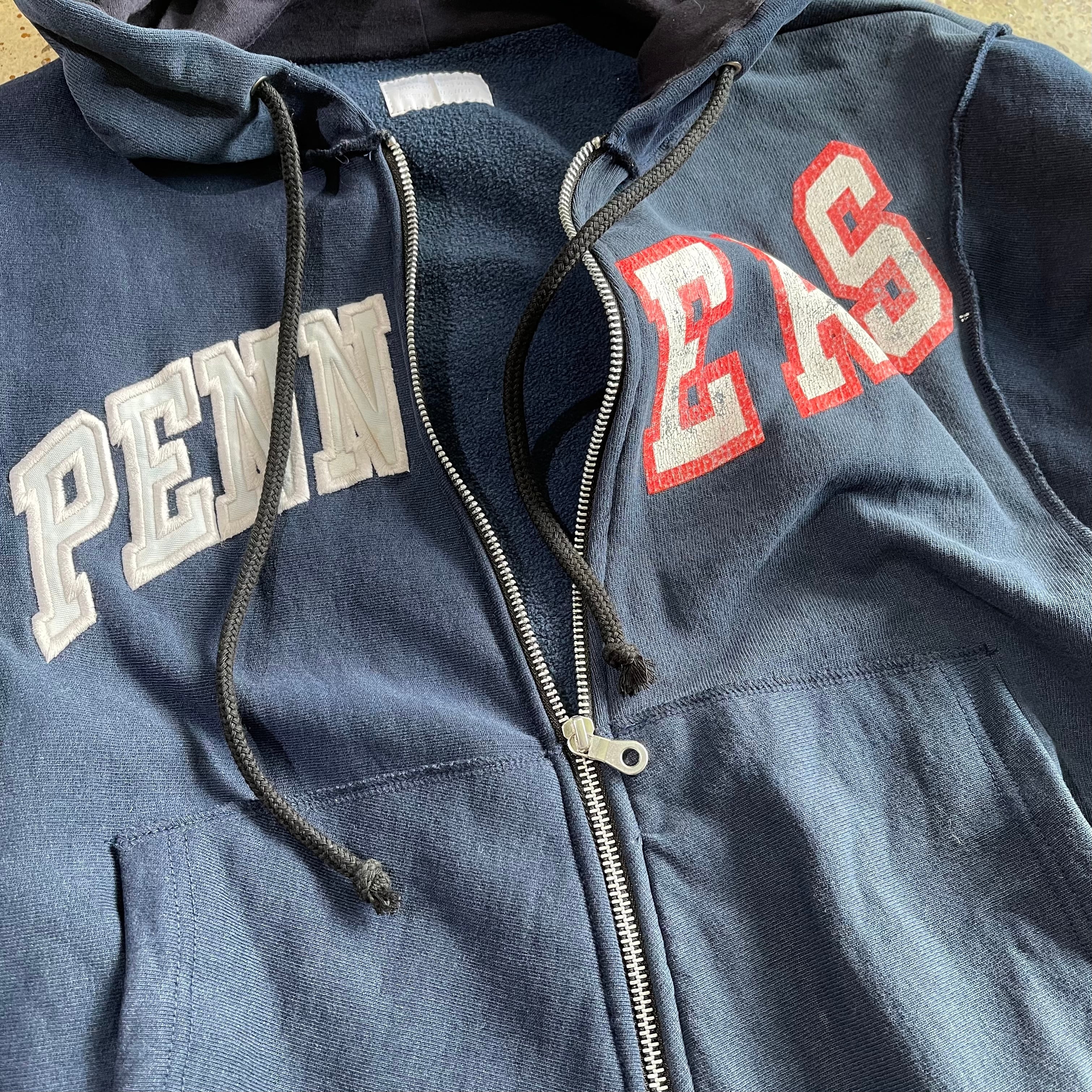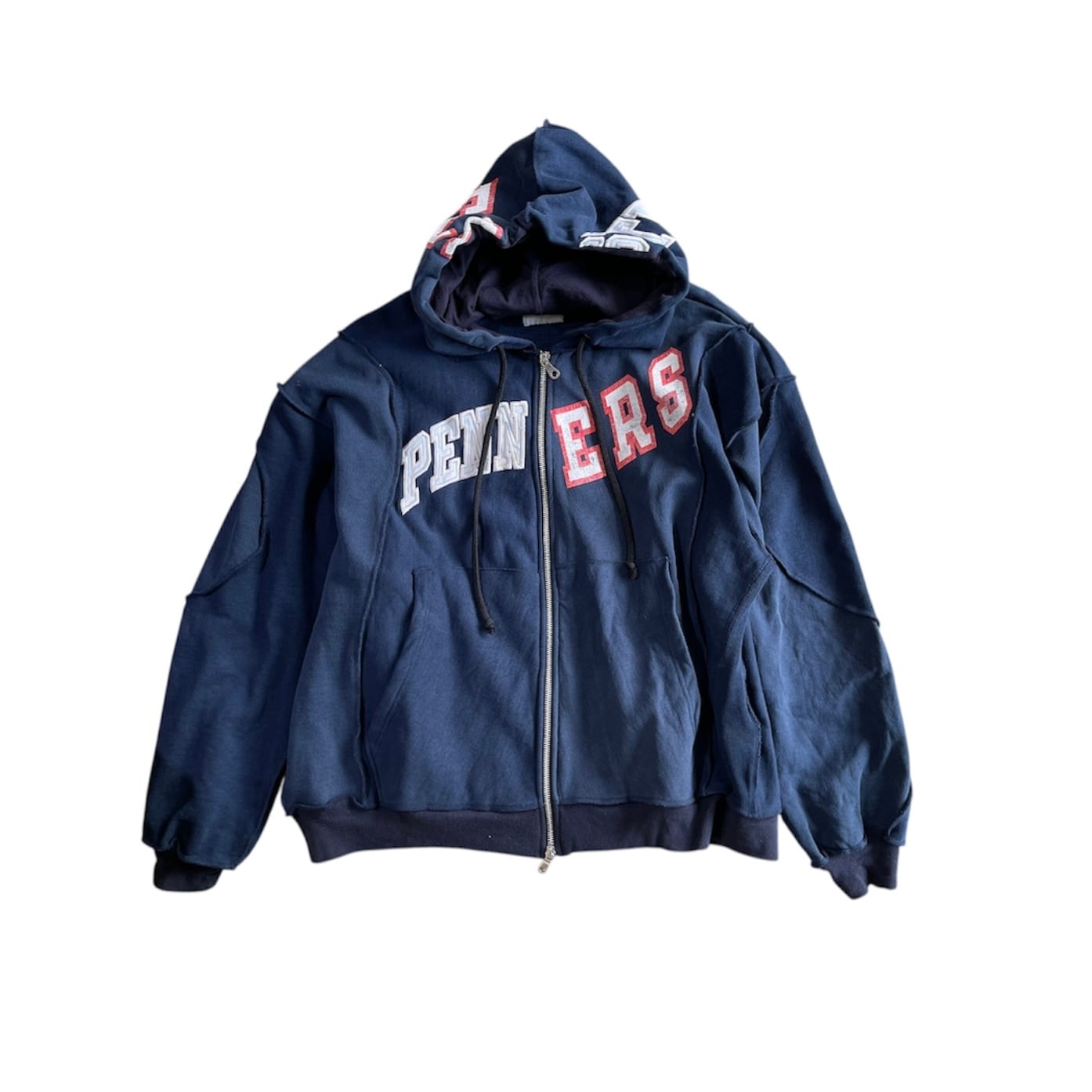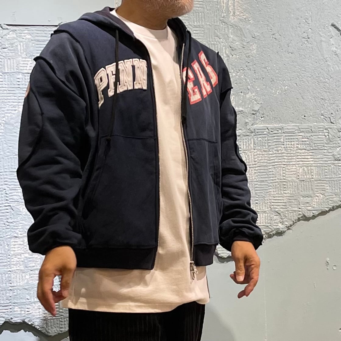 ユーズドの2種類のスウェットを使用したジップアップパーカー 柄の出方などがとても斬新、