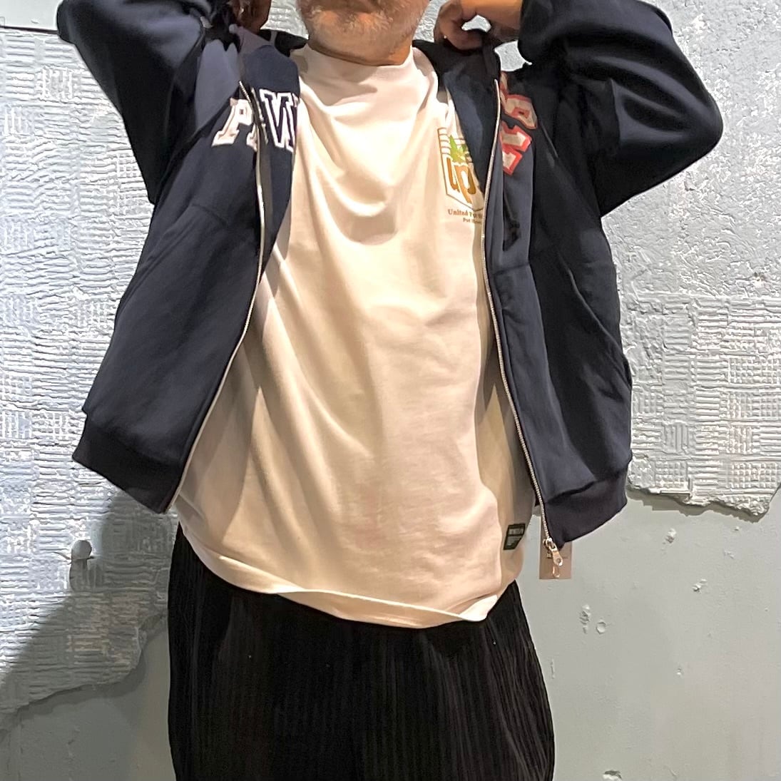 カットソーに上にさらりと羽織るだけで様になる、そんなジップアップパーカーです。