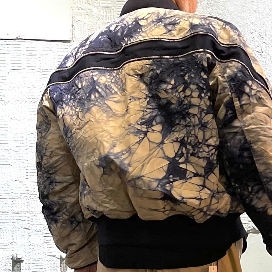 シワ加工とマーブル染を丁寧に施したブルゾンが独特の存在感
