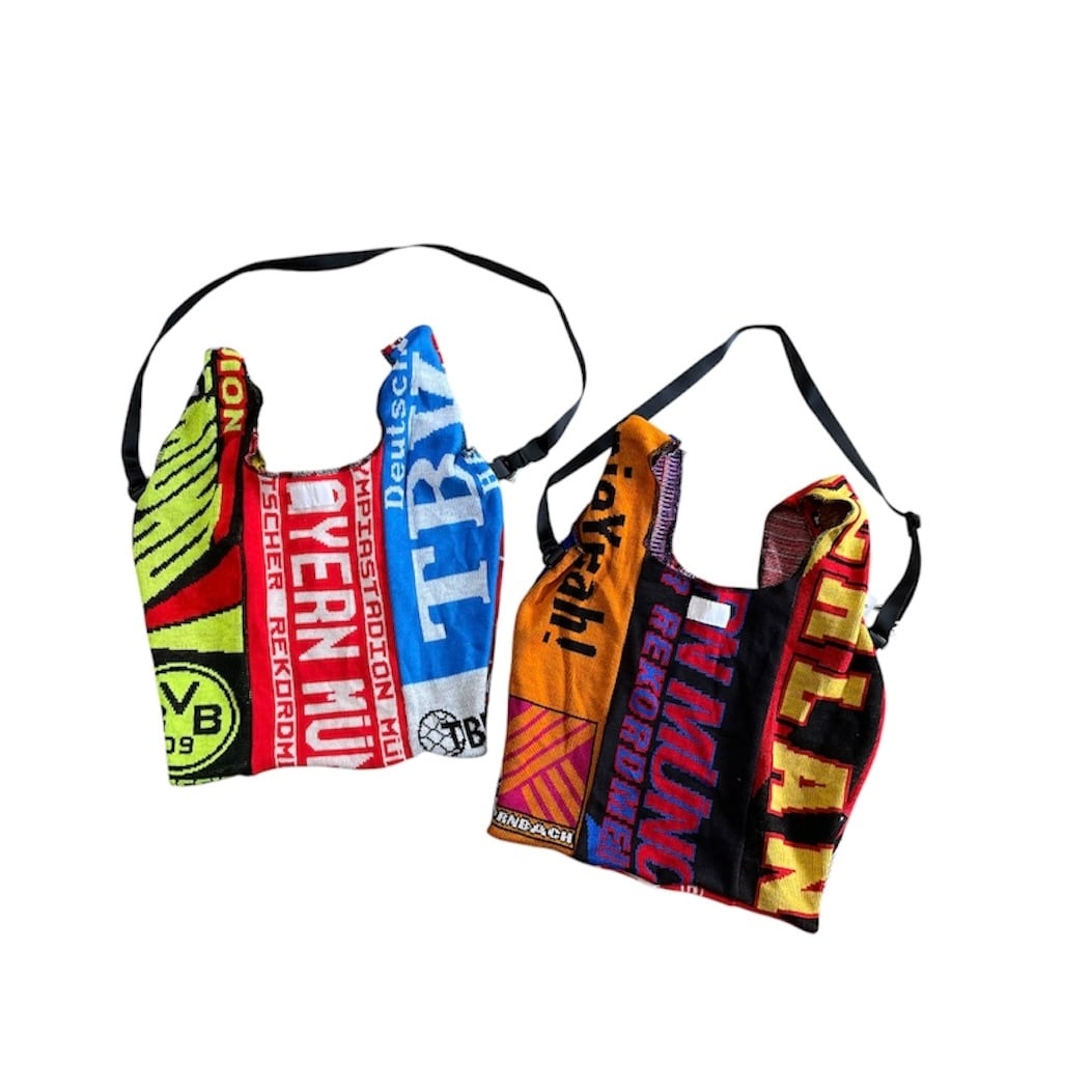 スポーツ観戦用に使わせていたサッカーチーム名が入ったマフラーを使用して作られたリメイクショルダーバックです。 手提げから ストラップを使い長さ調整できるショルダーバックにまで使っていただけます。