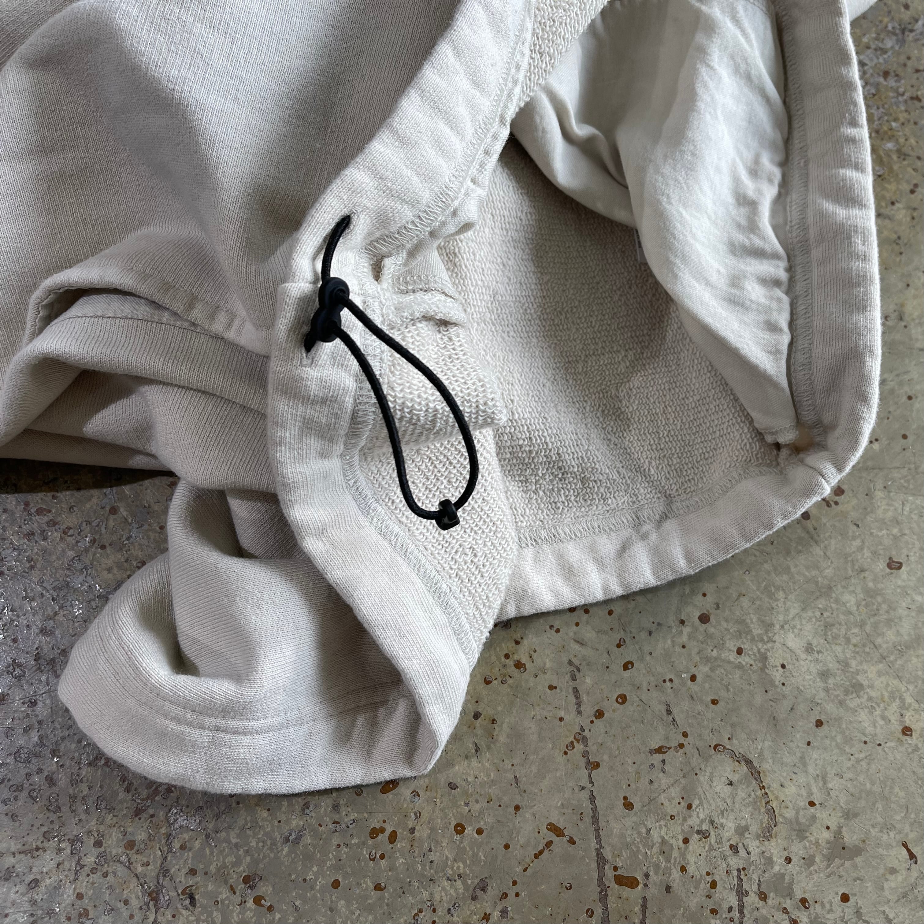サイドに分けたポケットなど丁寧な作り込み。 裾にはエラスティックコードで絞れるようにしています。
