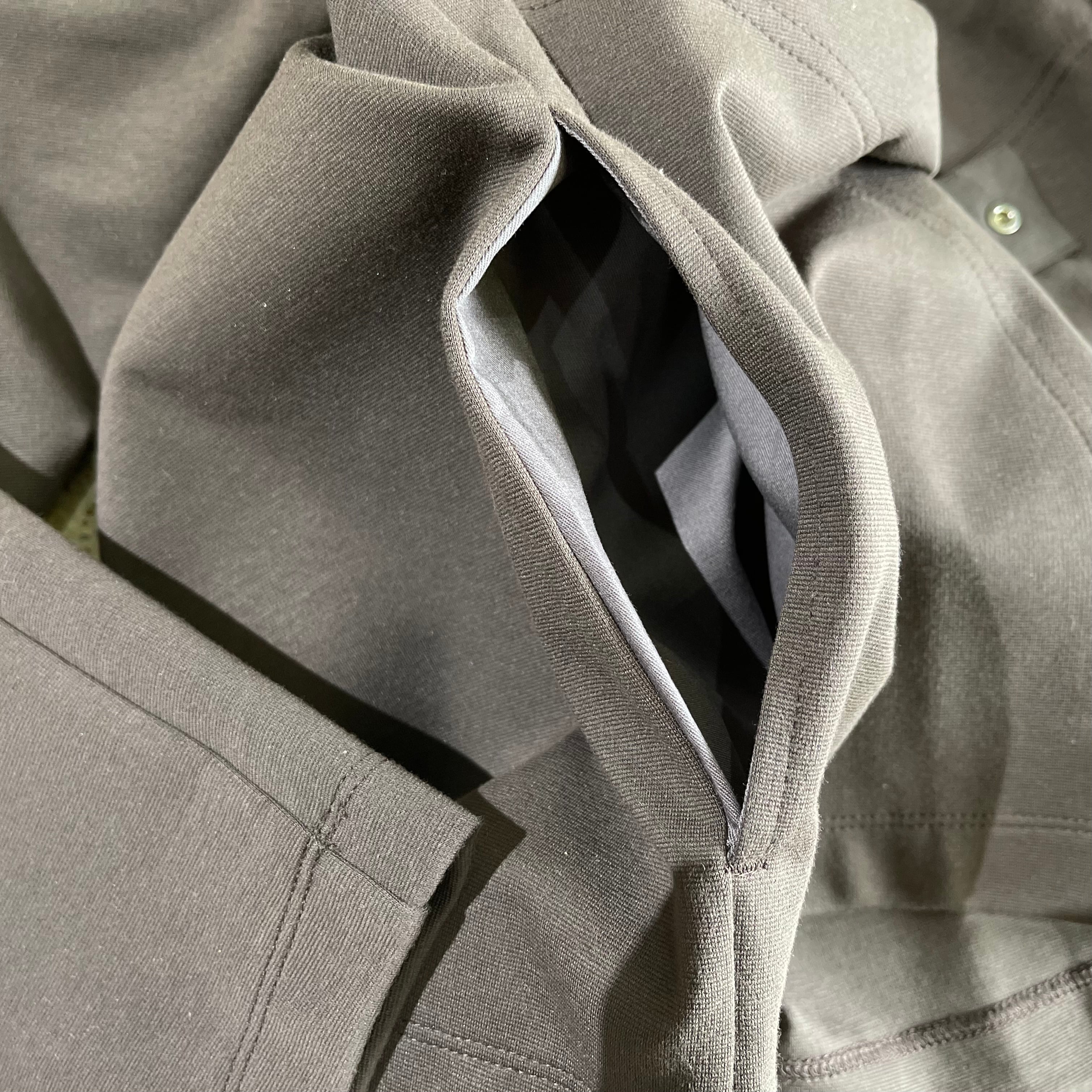 かんぬき縫いなどのディテールも丁寧 ウエストの裾は両サイドで絞れるドローコードです。 セットアップになるワンタックイージースラックスもご用意しております。