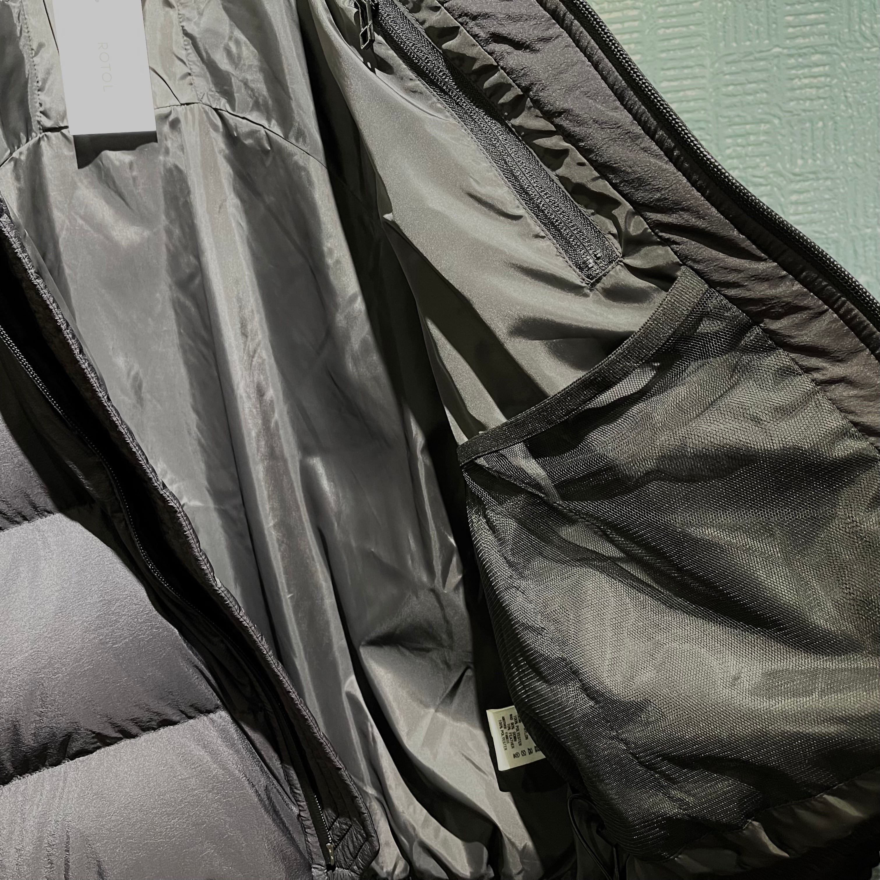 襟が二重に見える部分は内側の方に簡易ながら作り込まれたパーカーが収納されています。 内ポケットは左に一つとウエスト部分にミリタリー物にあるようなメッシュの大きめのポケットが付きます。