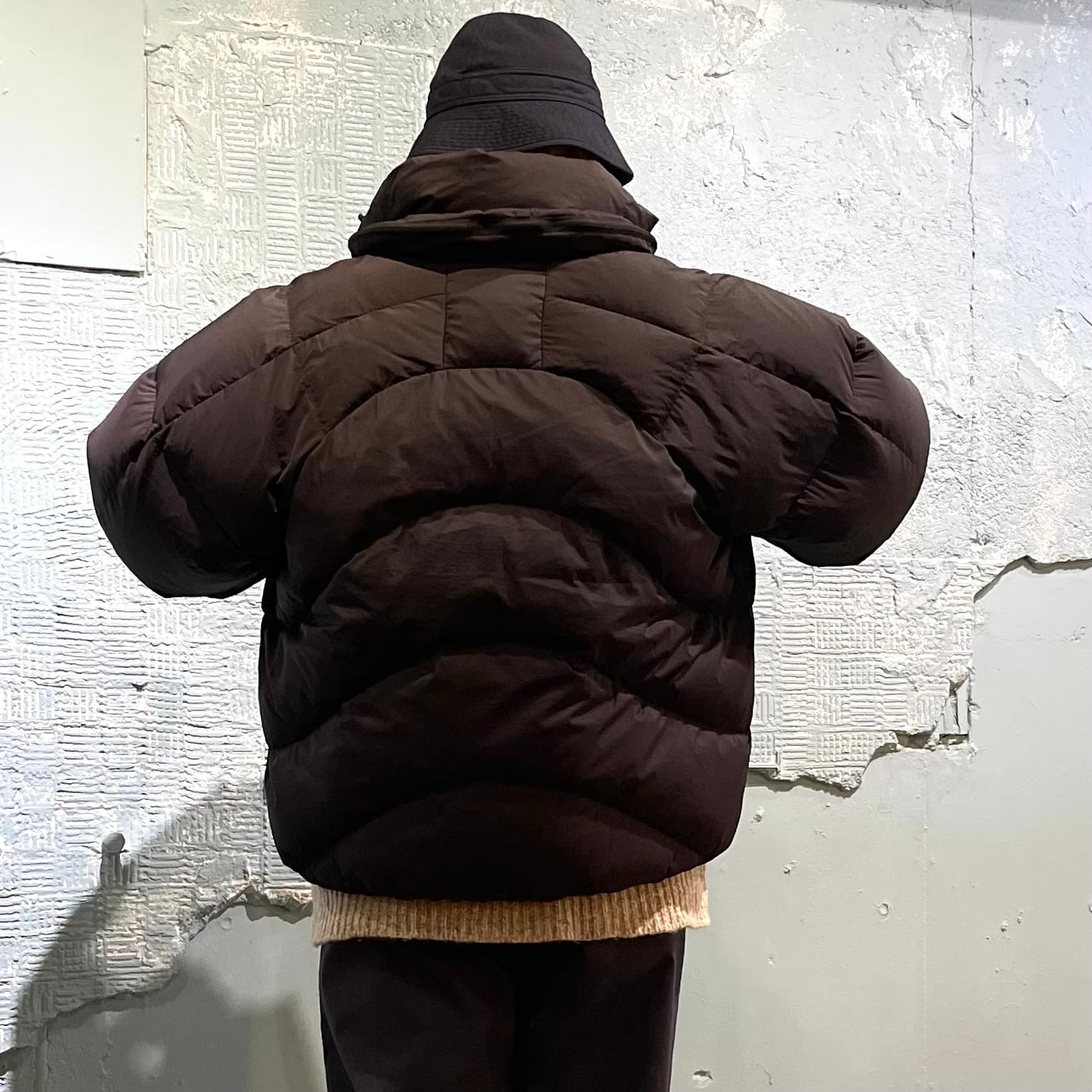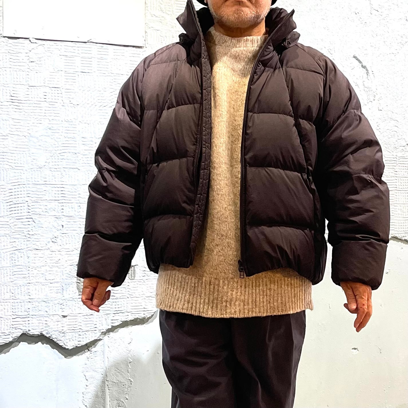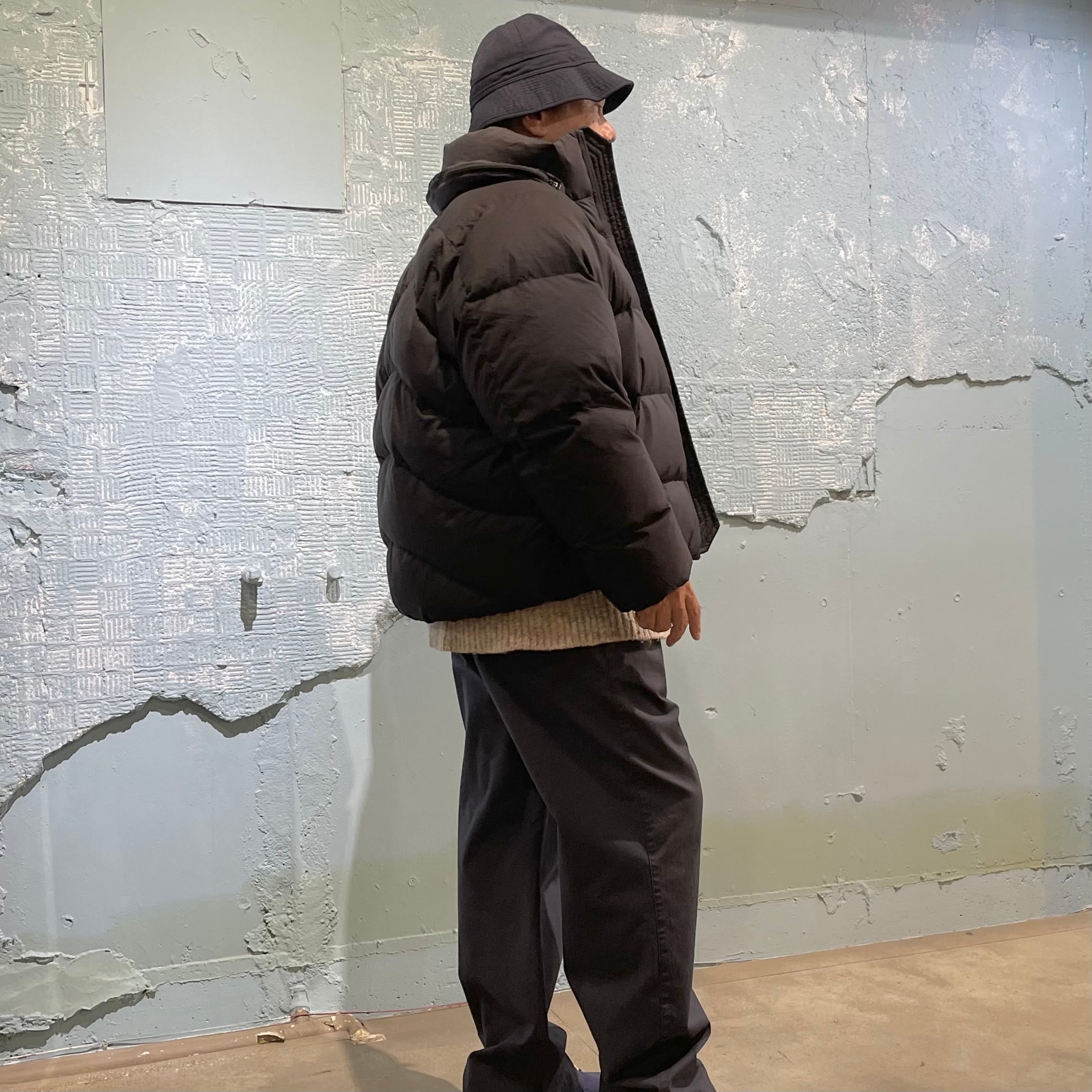 裾の部分はドローコードで微調整もできます。 ざっくりシルエットでジャケットの上からでもすんなり着れる汎用性の広い本格的なダウンに仕上がりました。