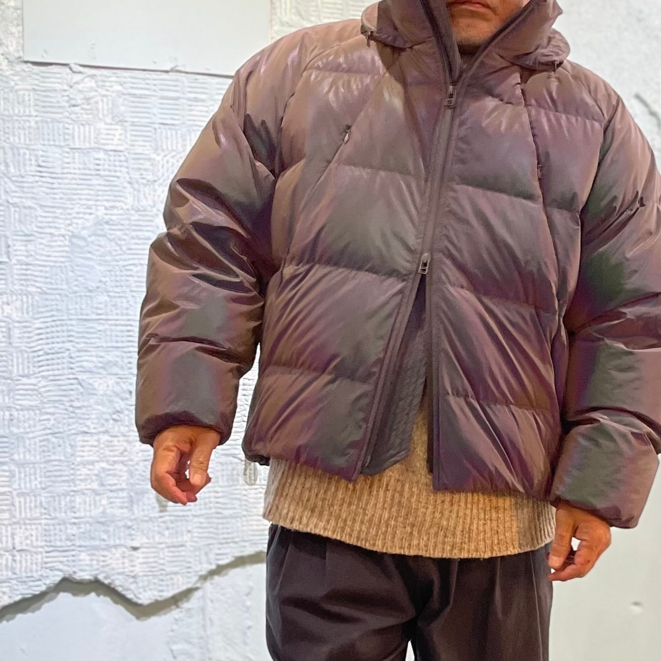 裾の部分はドローコードで微調整もできます。 ざっくりシルエットでジャケットの上からでもすんなり着れる汎用性の広い本格的なダウンに仕上がりました。