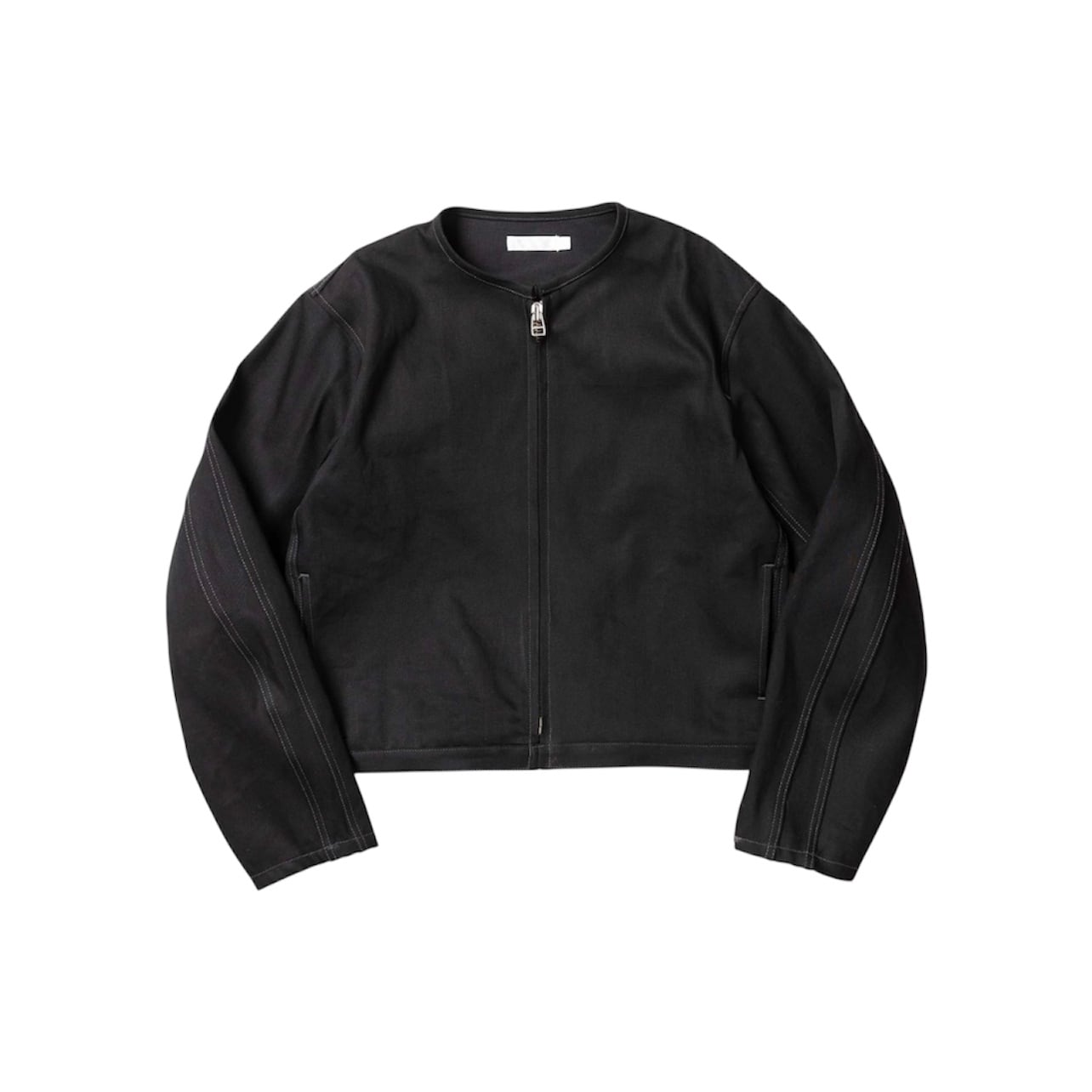 ロトル ノーカラーのライダースジャケットをデニムでリリース フロントはミニマルにシンプルに、背面は2重のTバック切り替えを施し無骨な印象に仕上げています。