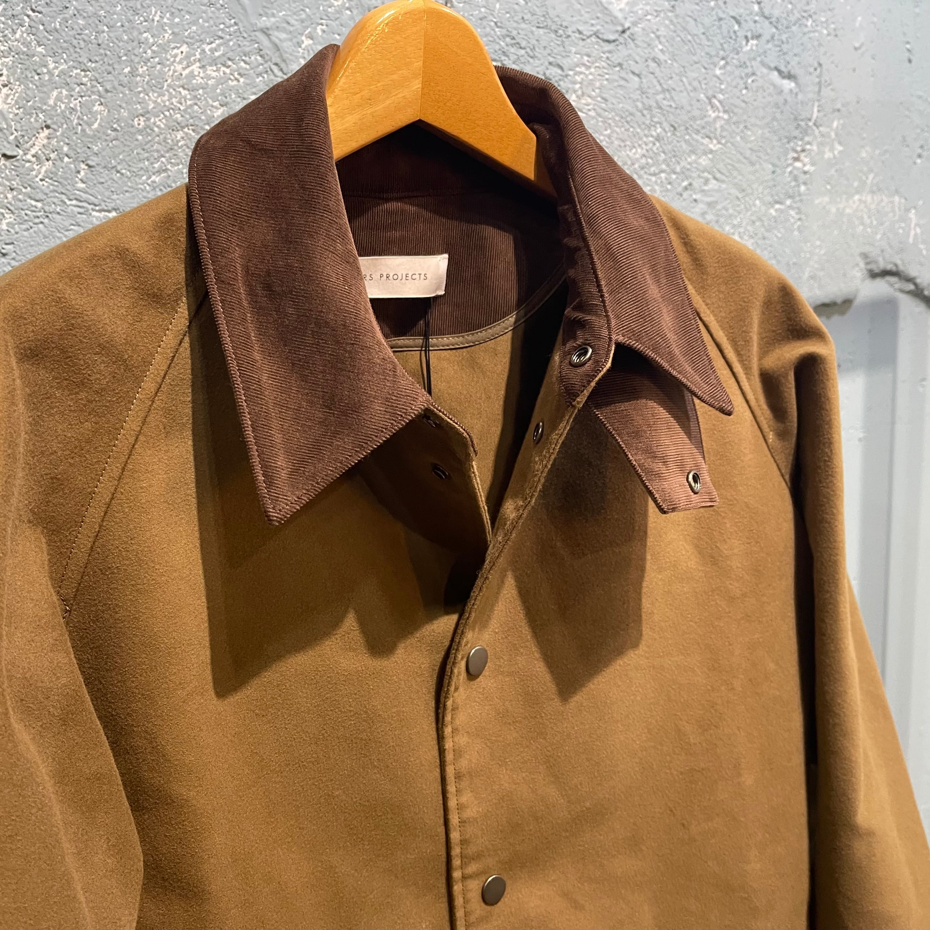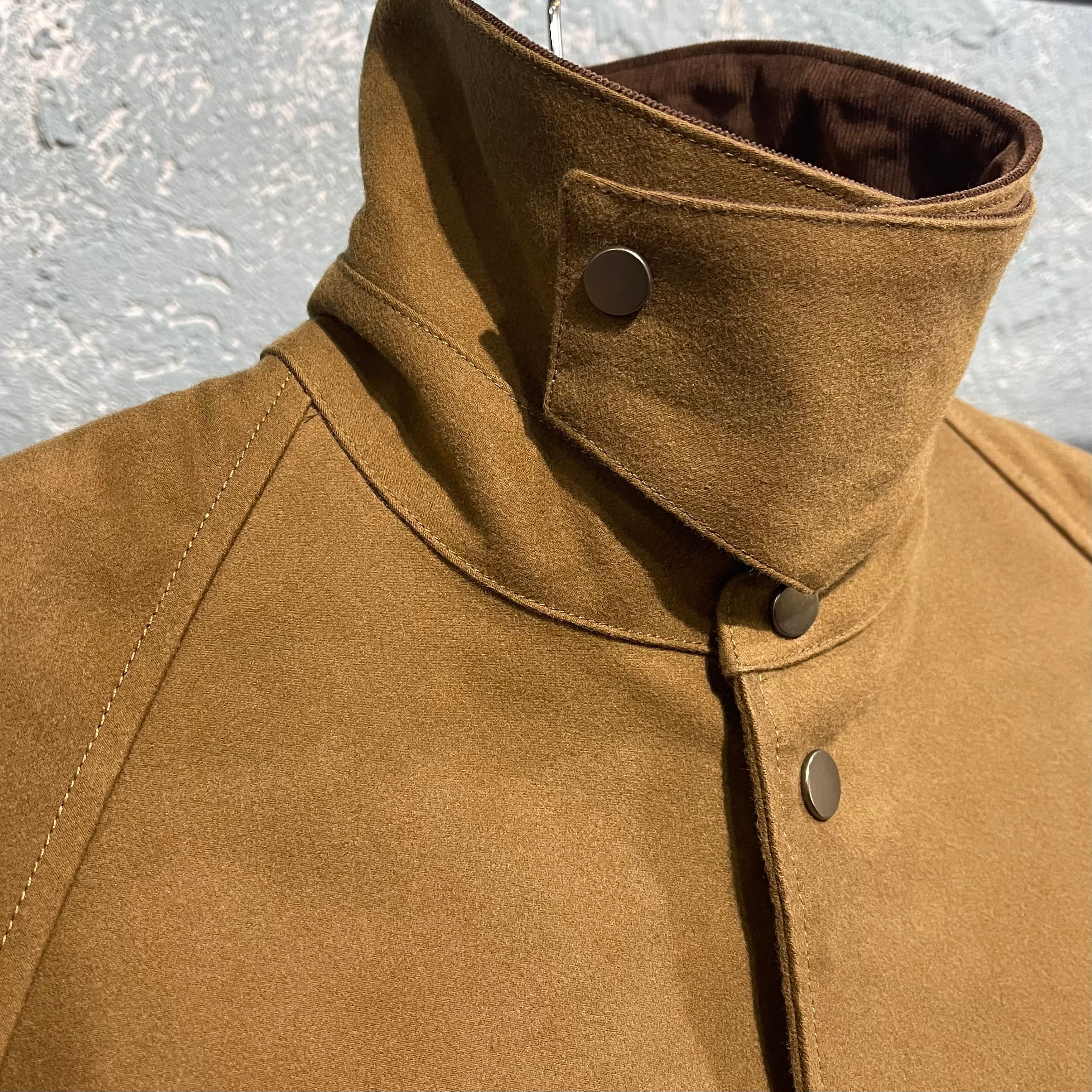 ヨーロッパワークなテイストのモールスキン素材が特徴のハーフコートです。 クラシックな襟コーディロイのブリティッシュなざっくりシルエット ライディングジャケットを彷彿とさせるデザイン