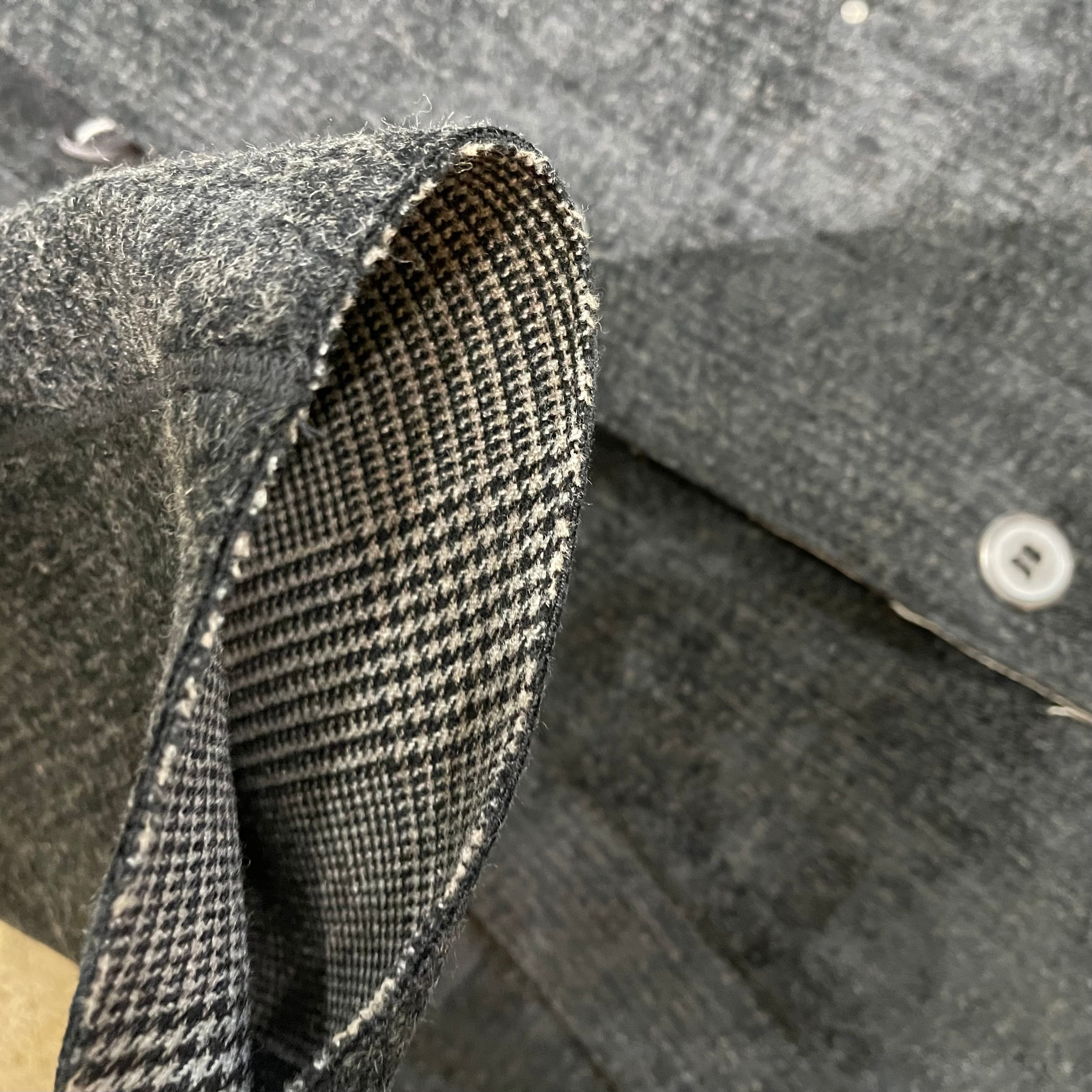 表は尾州のウールを使い 裏はベロア素材になるような使い方です。 国内でも希少なTPSミシンを使い突き合わせ縫いで縫製することで軽量に仕上げることができています。 保温性もウール70%を含んでいるので、しっかり暖かいです。