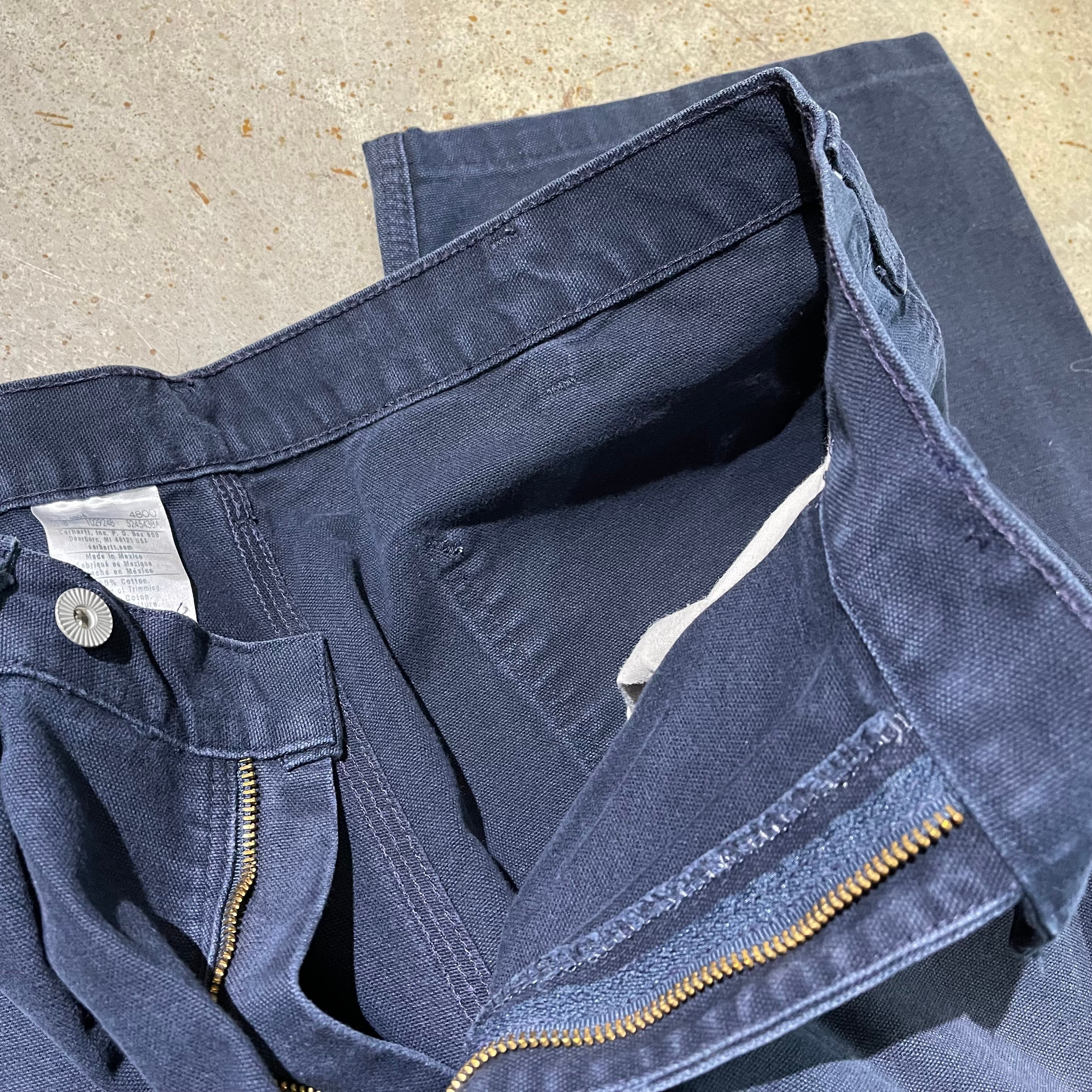 程よく履き込まれた カーハートのダック地のペインターパンツをワンタック加えるようなあっさりリメイクを施した太めボトムス 34incほどにウエストを修正 リメイクすることでウエストのはジャストぎみに適度なざっくり感を楽しめるパンツです。
