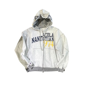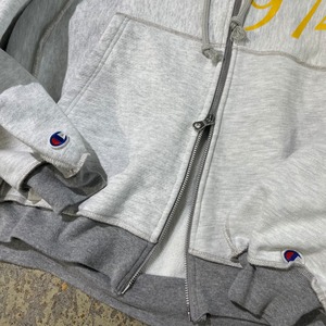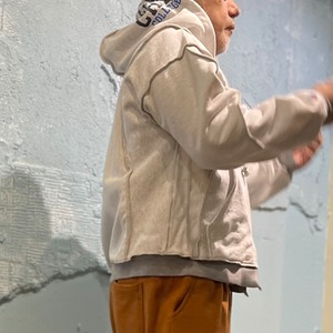 ユーズドの2種類のスウェットを使用したジップアップパーカー 柄の出方などがとても斬新、