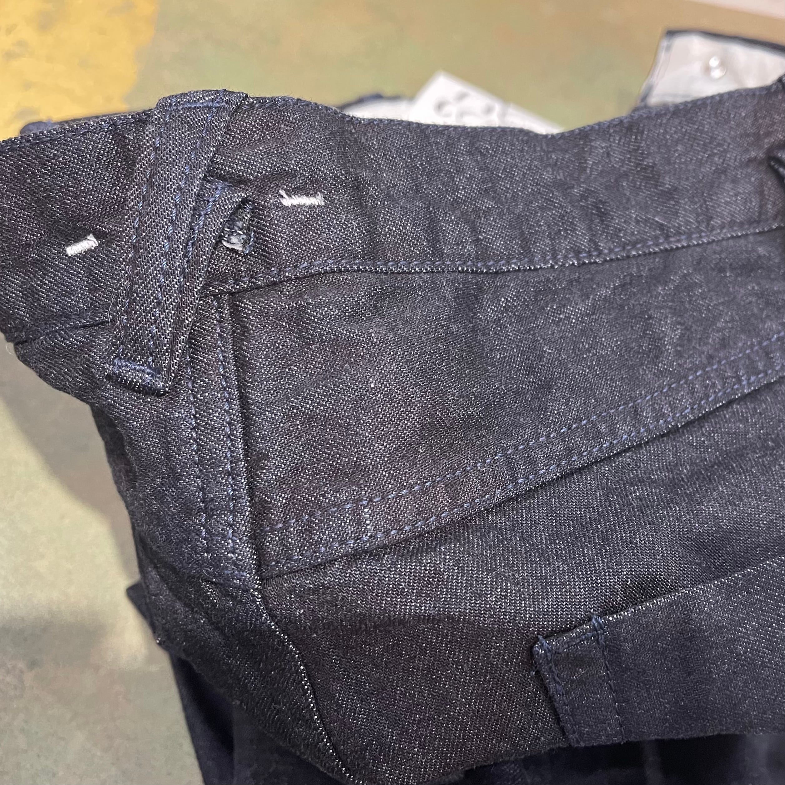バックポケットは大ぶりなワイングラスのようなライン