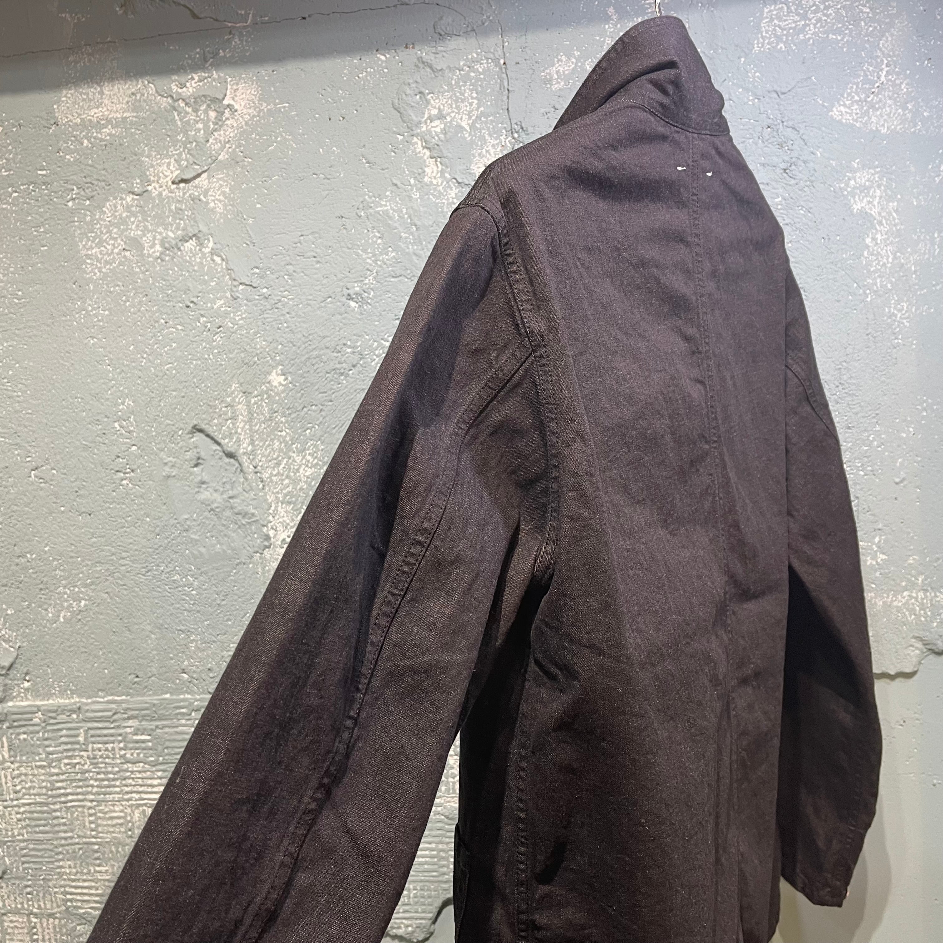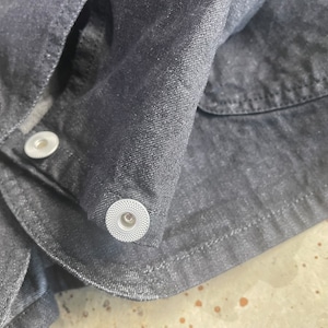 『サバイ』の11oz デニムを素材に作られたデニムジャケットです。 通常のデニムよりもライトな印象。 児島で織られたビンテージライクな質感です。 経年変化を楽しめる、アタリのしっかり出やすい素材感に仕上がりました。