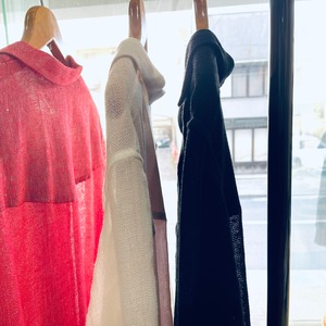 細かなメッシュで風通しの良い甘めな素材感ですので初夏まで着て頂けそうです。