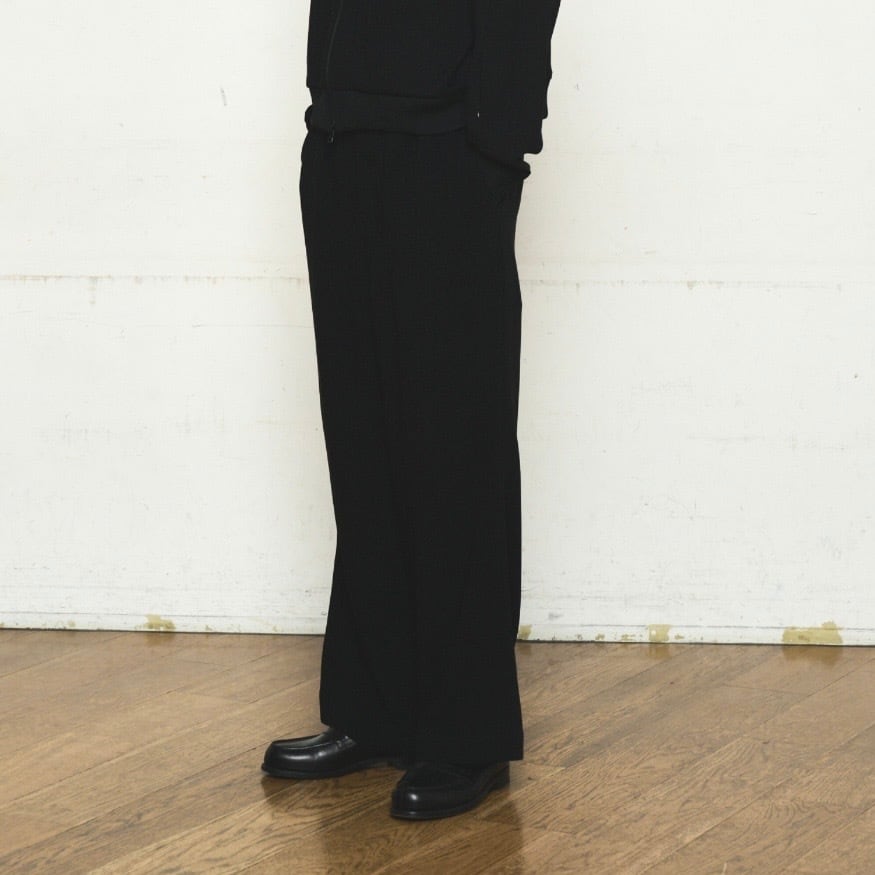 ゆるくリラックス感漂うロトルのイージートラウザーズです。 サイドはぐるりと生地を使っているため履き心地がとても快適、ジャージライクなテレっとした上質なトリアセテート71% ポリエステル29%の混紡素材 適度な伸縮性のある上品な質感です。