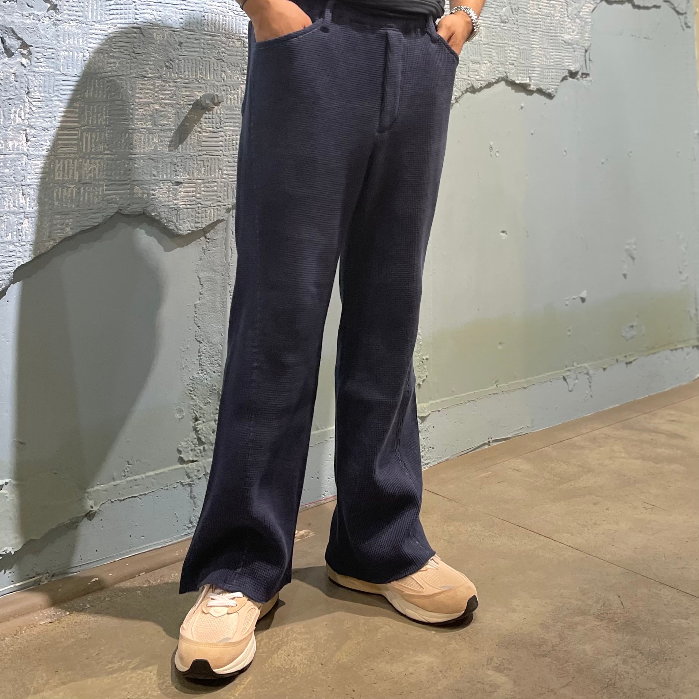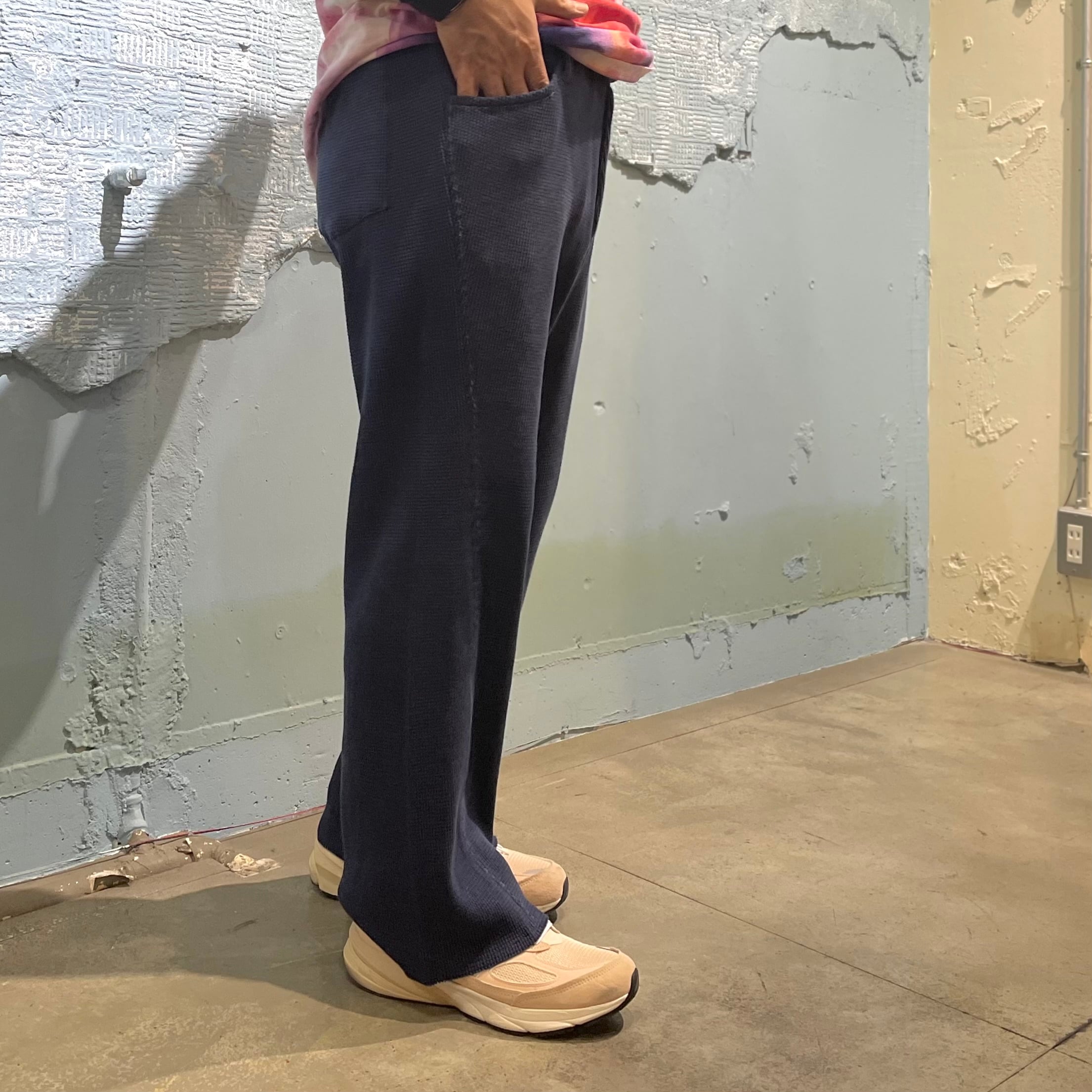 『サバイ』のワッフル素材の少しフレアなイージーパンツです。 ピグメントウォッシュにより柔らかく仕上げられた素材感、肌触りも優しいです。