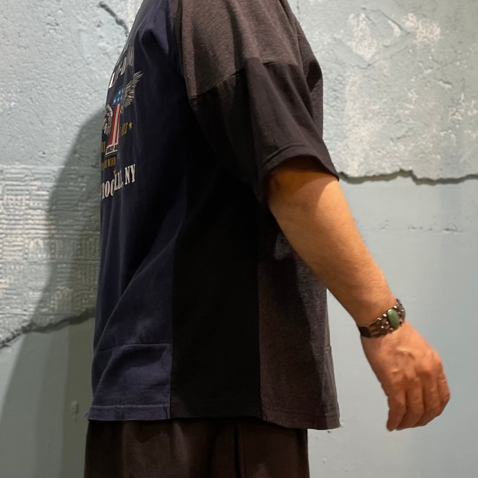 チェンジズの立体的な裁断を駆使して制作されたリメイクTです。 ビンテージな風合いに合うような新しい生地とリアルなvintge TEE との生地の合わせにより、自然な風合いでリメイクしています。 繋ぎ合わせている縫製はステッチを見せない軽やかな縫製。